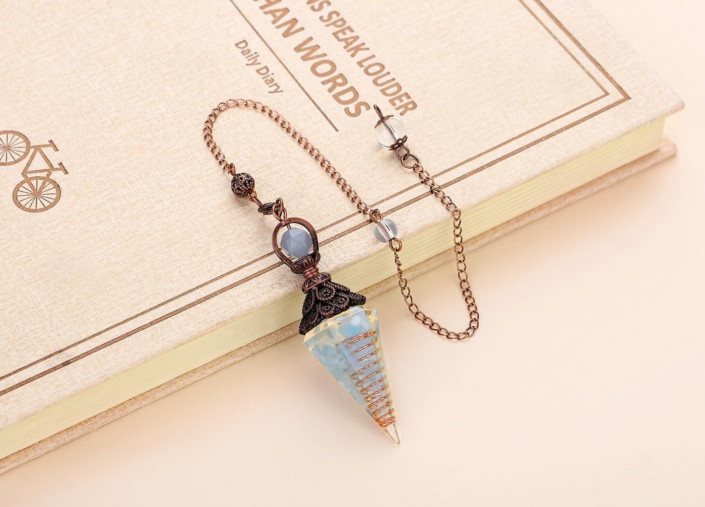 [PENDULUM] Pendulums are usually crystals or gems placed at the end of chains or ropes. Crystals are an excellent choice for pendulums because they already possess powerful frequencies and deep spirituality. It is called a pendulum because of the movement it uses when providing guidance, and it swings in different directions based on the answer.