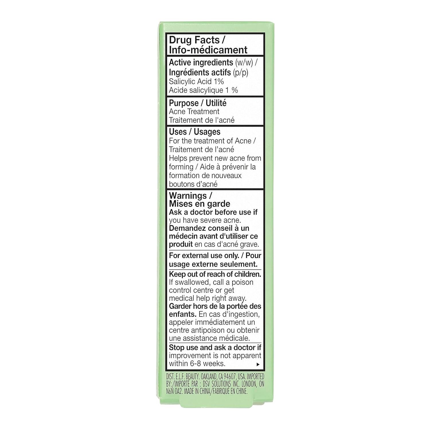 What is it: A roll-on gel spot treatment packed with calming and acne-fighting ingredients to help treat and soothe current acne while preventing new blemishes. Why we love: Updated, clean formula. Same great results Roll-on gel formula is easy to use Packed with acne-fighting Salicylic Acid plus Aloe and Witch Hazel Helps treat, soothe, and reduce discomfort with blemishes Helps to prevent new blemishes Fragrance-Free Derm-developed and non-comedogenic Key ingredients: 1% Salicylic Acid – Helps treat current blemishes and prevent new ones by clarifying pores Aloe – Soothes skin Witch Hazel – Helps soothe and reduce excess oil Great for: Oily Skin Acne-prone skin When unwanted blemishes just pop up, call a fast SOS with this roll-on acne gel spot treatment. The dermatologist-tested formula is packed with acne-fighting Salicylic Acid plus Aloe and Witch Hazel to quickly help reduce acne, soothe discomfort, plus prevent new blemishes. Up to three times a day, roll the treatment over any blemishes, blackheads, and breakout-prone areas to easily target acne (no dirty fingers needed!) so your skin is in the clear. All e.l.f. products are free from phthalates, parabens, nonylphenol ethoxylates, triclosan and triclocarban. Proud to be 100% vegan, cruelty-free, and Leaping Bunny Certified. Because kindness is chic.