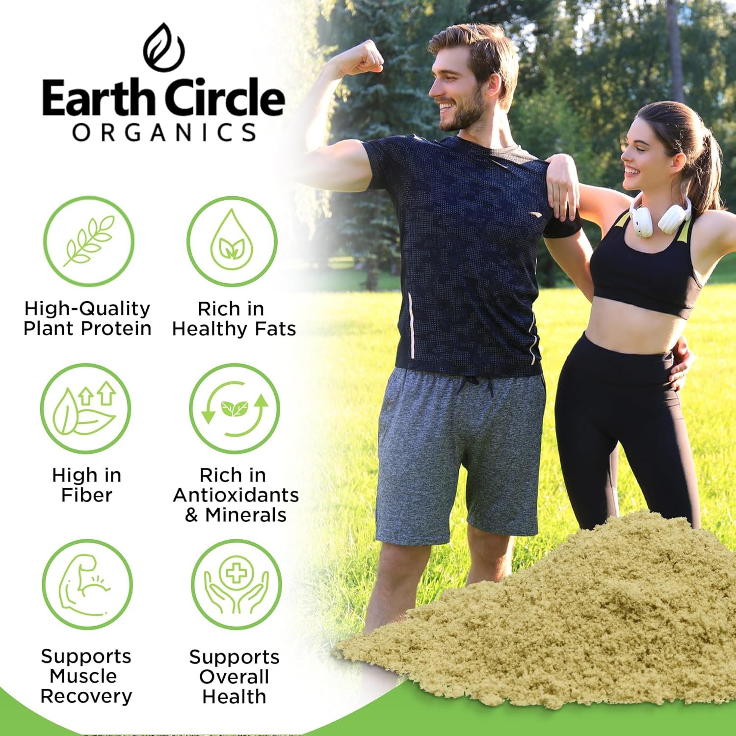 ✅ WHY CHOOSE EARTH CIRCLE ORGANICS? Our gluten-free raw hemp protein powder contains 19g of Organic hemp seed powder per serving, 4 grams of organic high fiber, 4 grams of net carbs, 0 grams of sugar, and 120 calories per serving. It gives 20 amino acids, including the 9 essential amino acids. It helps to increase energy, productivity, and strengthen the immune system. It also adds to the overall sense of well-being. From increased metabolism to its muscle-building protein properties