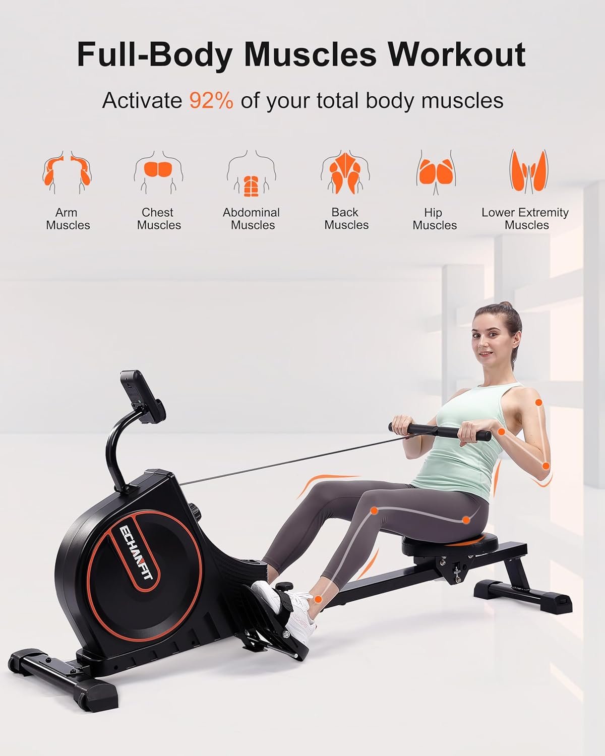 Home Fitness Cardio Equipment Rowing Machines ECHANFIT Magnetic Rower Rowing Machine for Home Use Foldable w/16 Leve…