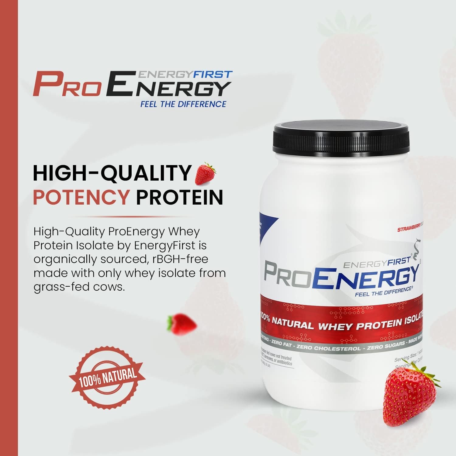 𝐅𝐚𝐭-𝐅𝐫𝐞𝐞 𝐀𝐧𝐝 𝐇𝐞𝐚𝐥𝐭𝐡𝐲 𝐀𝐝𝐝𝐢𝐭𝐢𝐨𝐧 To Your Fitness Diet: Savor the guilt-free strawberry goodness with EnergyFirst organic protein powder! EnergyFirst protein powder is sweetened naturally with stevia leaf extract. With its high-potency protein, lactose-free formula, and zero fat or cholesterol content, it’s the perfect supplement for those seeking a leaner, healthier lifestyle.