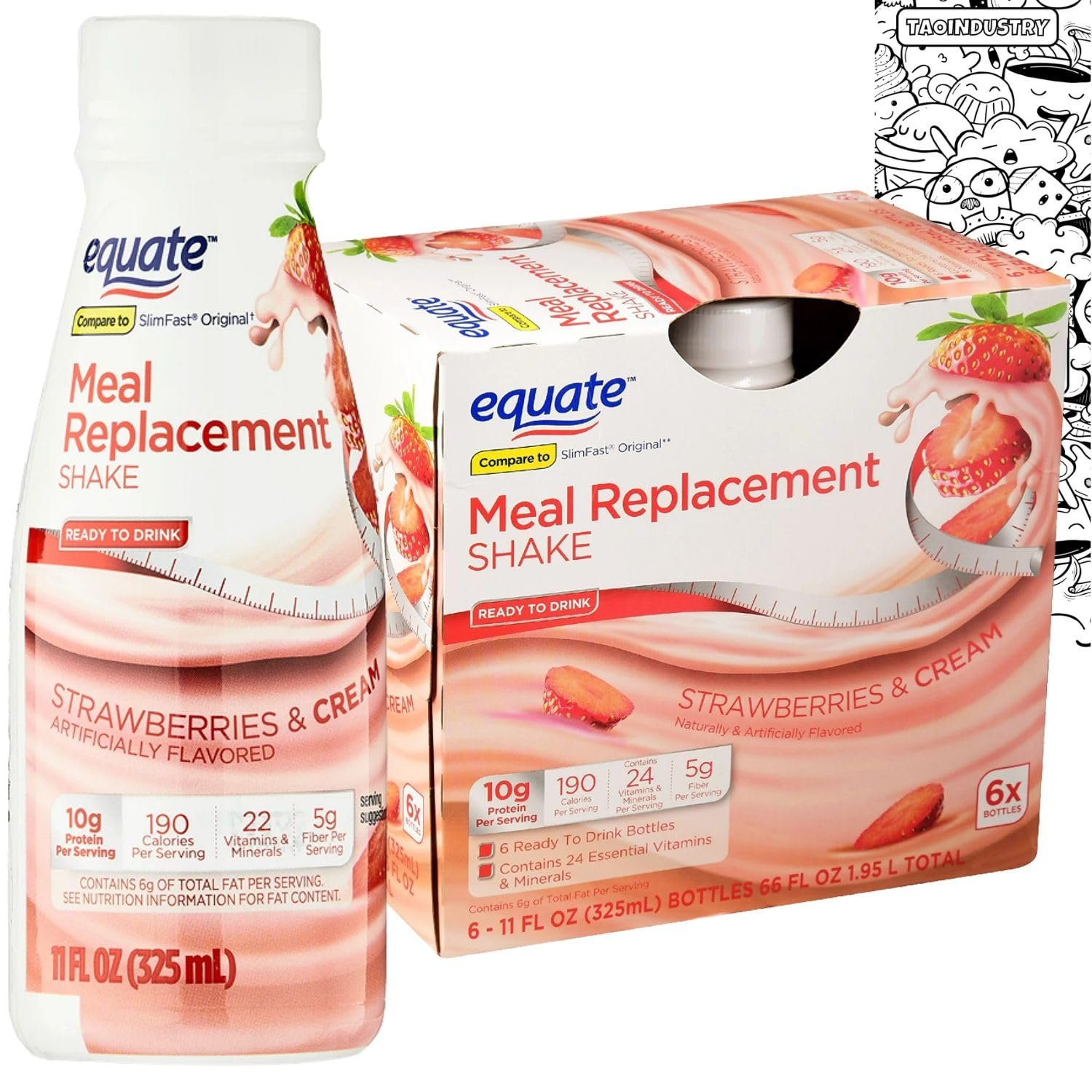 Equate Strawberries & Cream Meal Replacement Shake 11 Fl Oz. Bottle, 6 Counts. Free TAOindustry bookmark