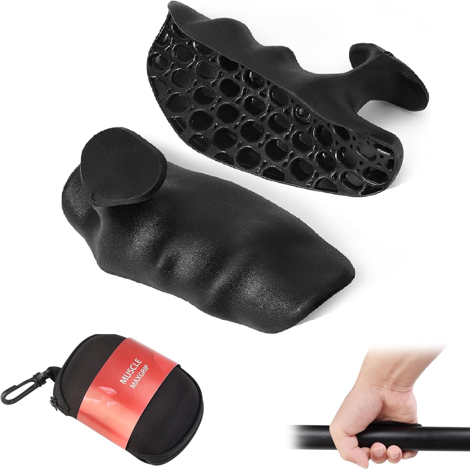 – Pull Up Grips: Made from elastic silicone, the grip handles significantly enhance friction to keep your hands securely on barbells or dumbbells without slipping