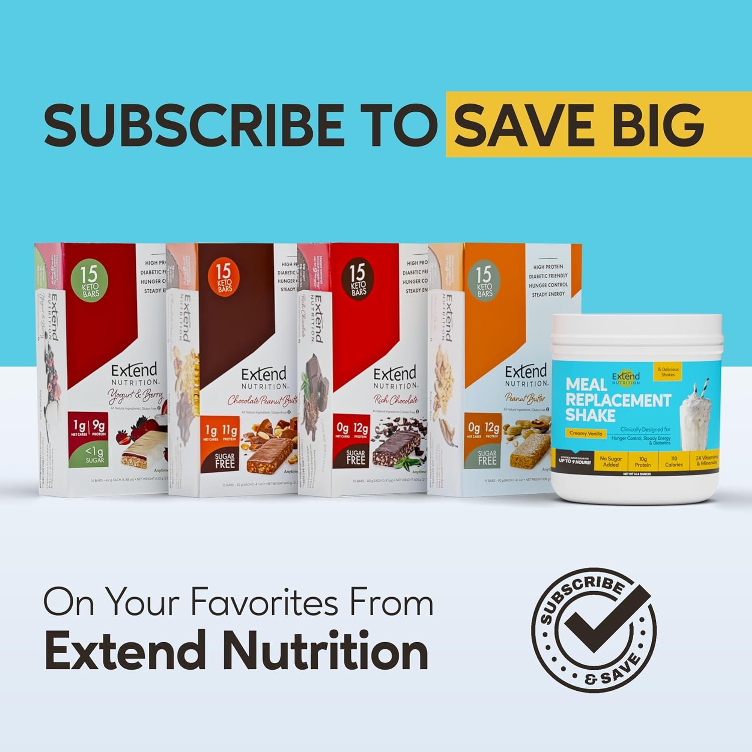 HUNGER CONTROL + STEADY ENERGY: Extend Diabetic Protein Shakes are the only meal replacement drinks help to control blood sugar for up to 9 hours. Stable blood sugar is key to appetite control and healthy long lasting energy.