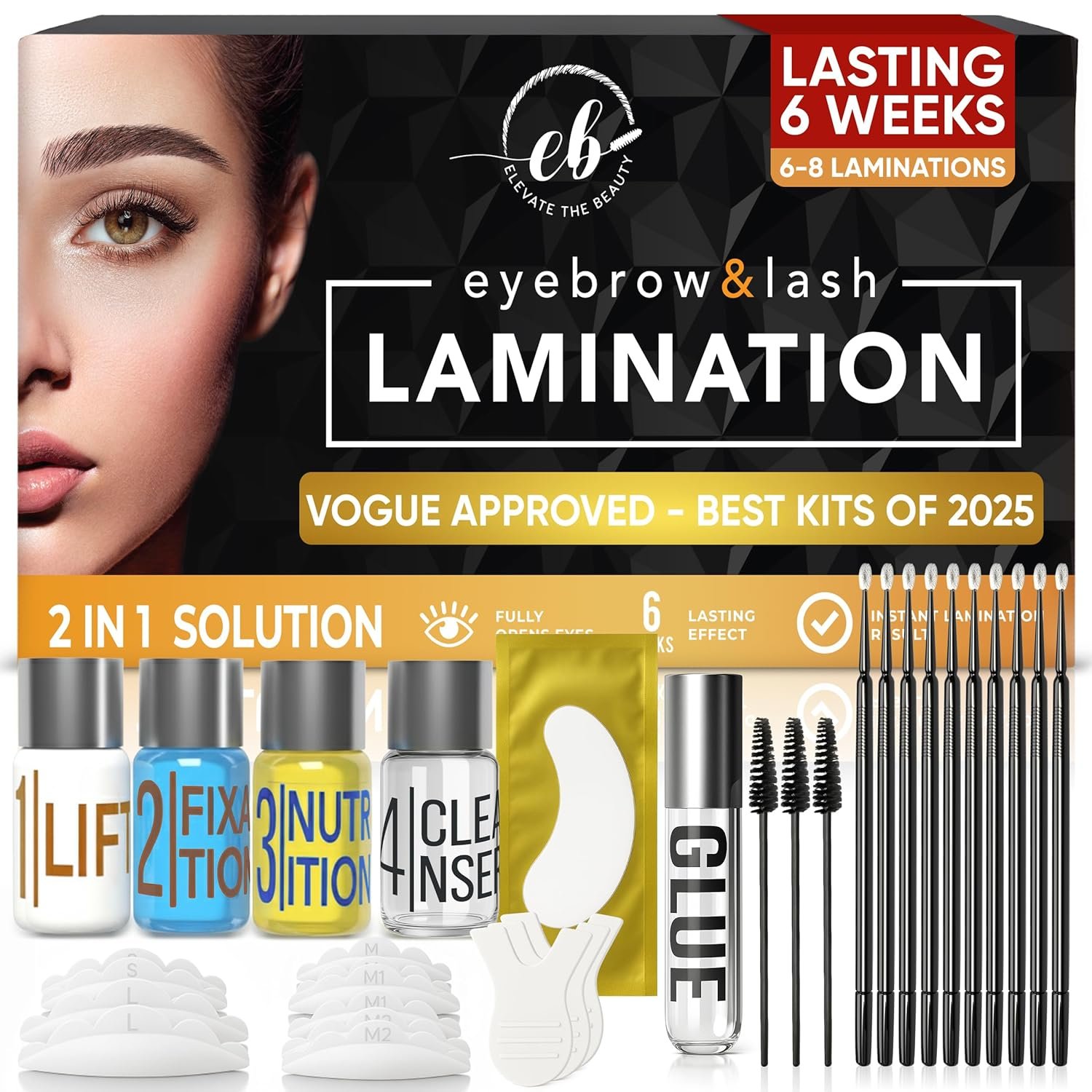 [Salon Results at Home] – Transform your brows and lashes with our Elevate the Beauty 2-in-1 Eyebrow and Lash Lamination Kit in just 4 simple steps! This versatile set includes everything you need for fuller brows and beautifully lifted lashes that last up to 8 weeks. Get salon-quality results right from home or on the go.