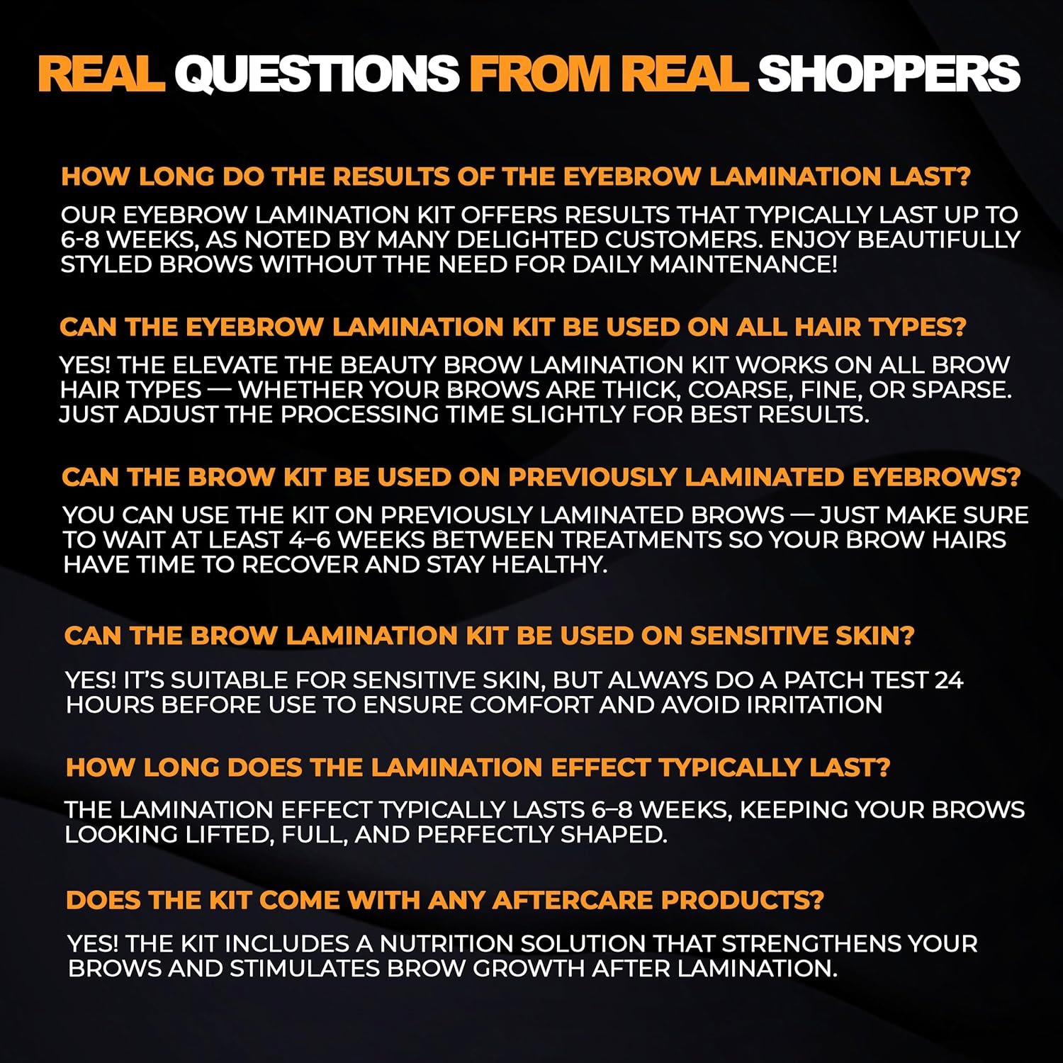 [Long-Lasting Lamination] – Enjoy lifted, defined brows and curled lashes with no daily maintenance needed. Our gentle, high-quality formula provides up to 6 weeks of flawless, naturally beautiful brows and lashes, giving you that fresh, salon-ready look every morning.