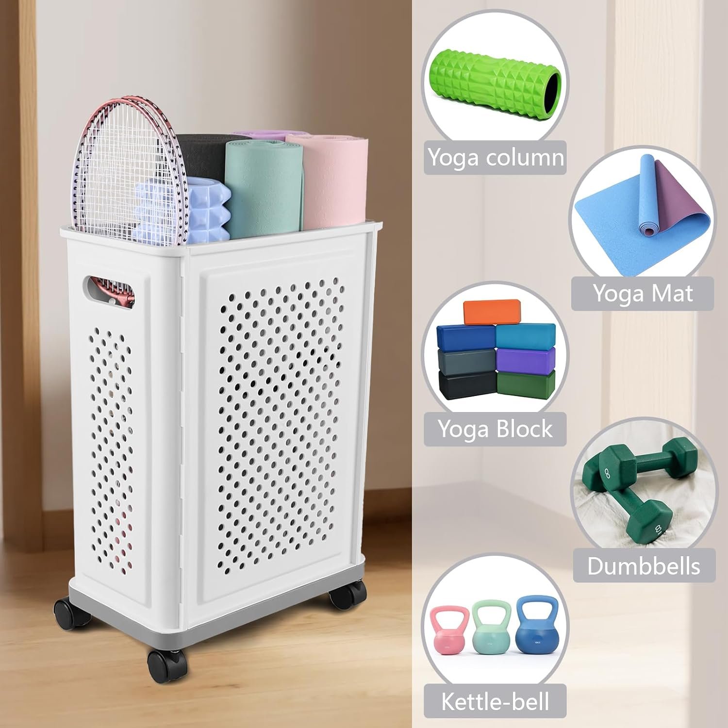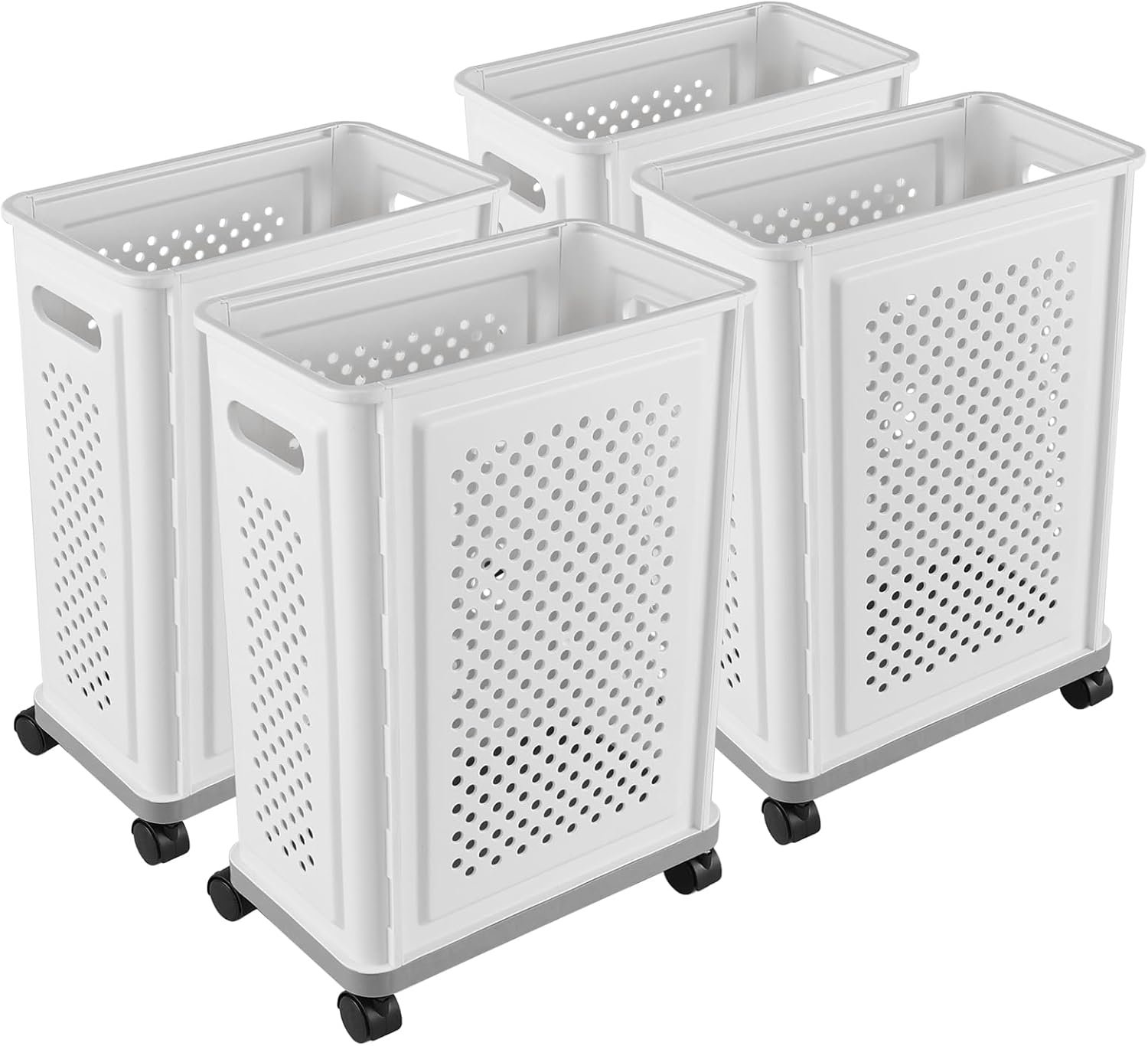 Farmoon 4 pack white plastic yoga mat storage bins with wheels, size: 15.16″ x 8.74″ x 21.65″, durable and versatile, commonly used in home gyms, yoga studios, dance studios, fitness club, laundry room, etc.