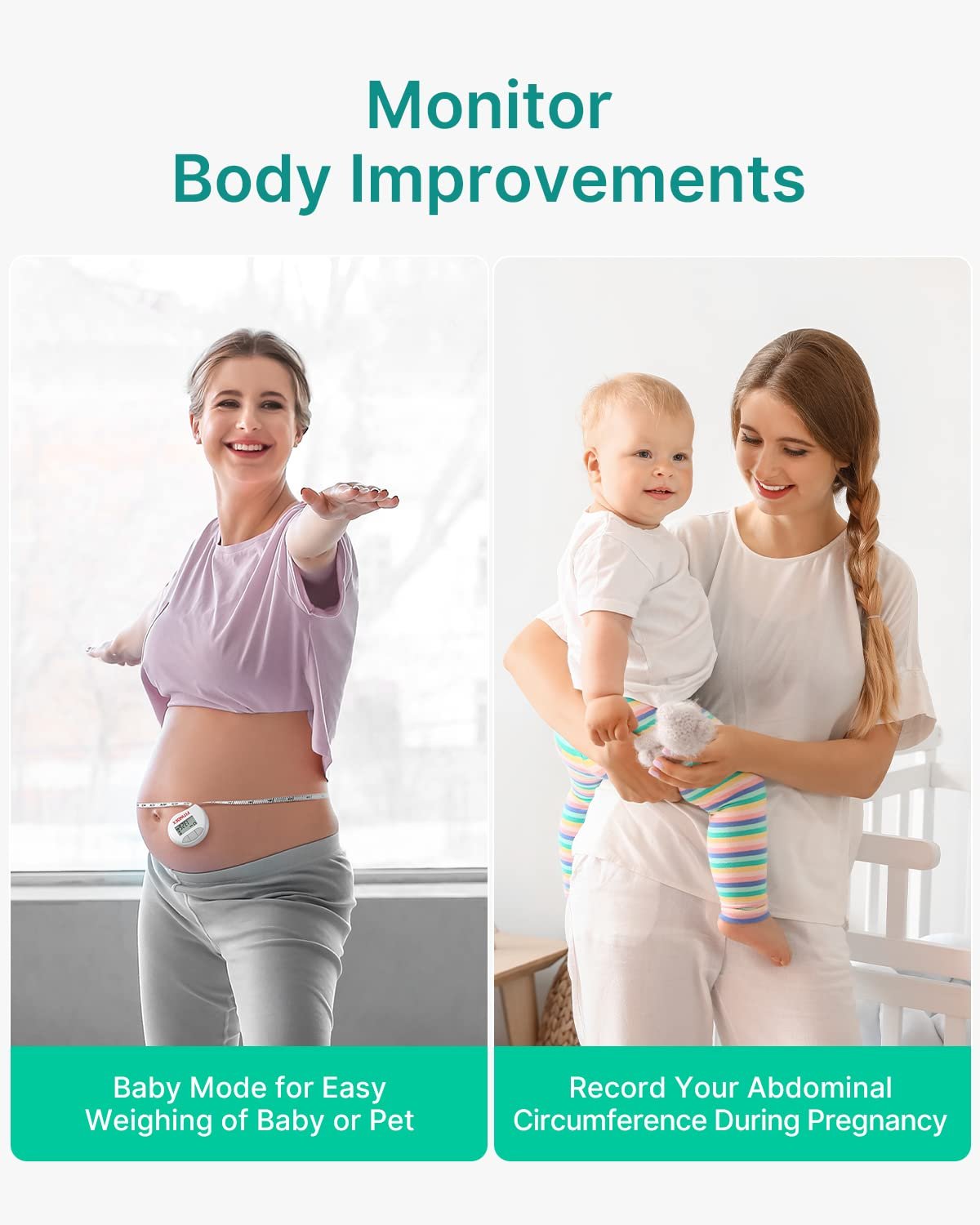 [Precise & Consistent] Benefit from 4 highly-sensitive sensors offering precise measurements up to 400lb/180kg in 0.2lb/0.05kg increments. The smart body tape ensures exact body dimensions with its handy locking pin and retracting button