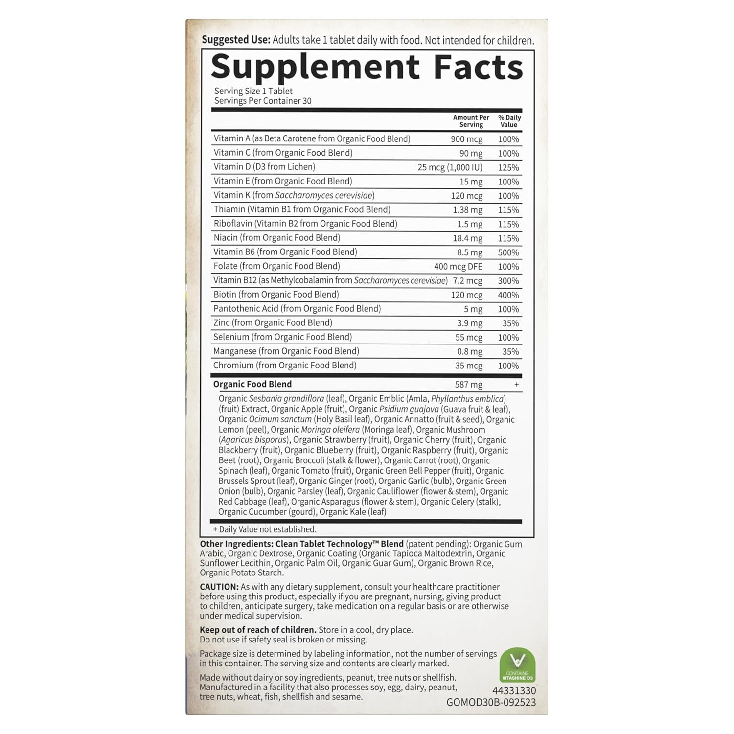 CERTIFIED ORGANIC MULTIVITAMIN: Organic vitamins and minerals are made from real foods—gently extracted using water and proudly third-party tested and certified Organic, Non-GMO, Gluten Free, Vegan & Kosher