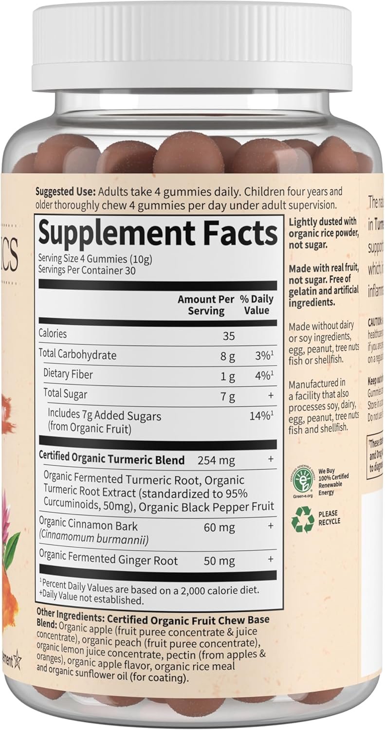 Made with Organic Fermented Turmeric & Ginger, Garden of Life Organics Turmeric Inflammatory Response Gummy† is made with Certified USDA Organic and Non-GMO Project Verified real fruit—no animal gelatin or refined sugars—just real fruit! Our ingredients are sourced from sustainable organic farms and use an Organic, Non-GMO extraction method without the use of corn alcohol.