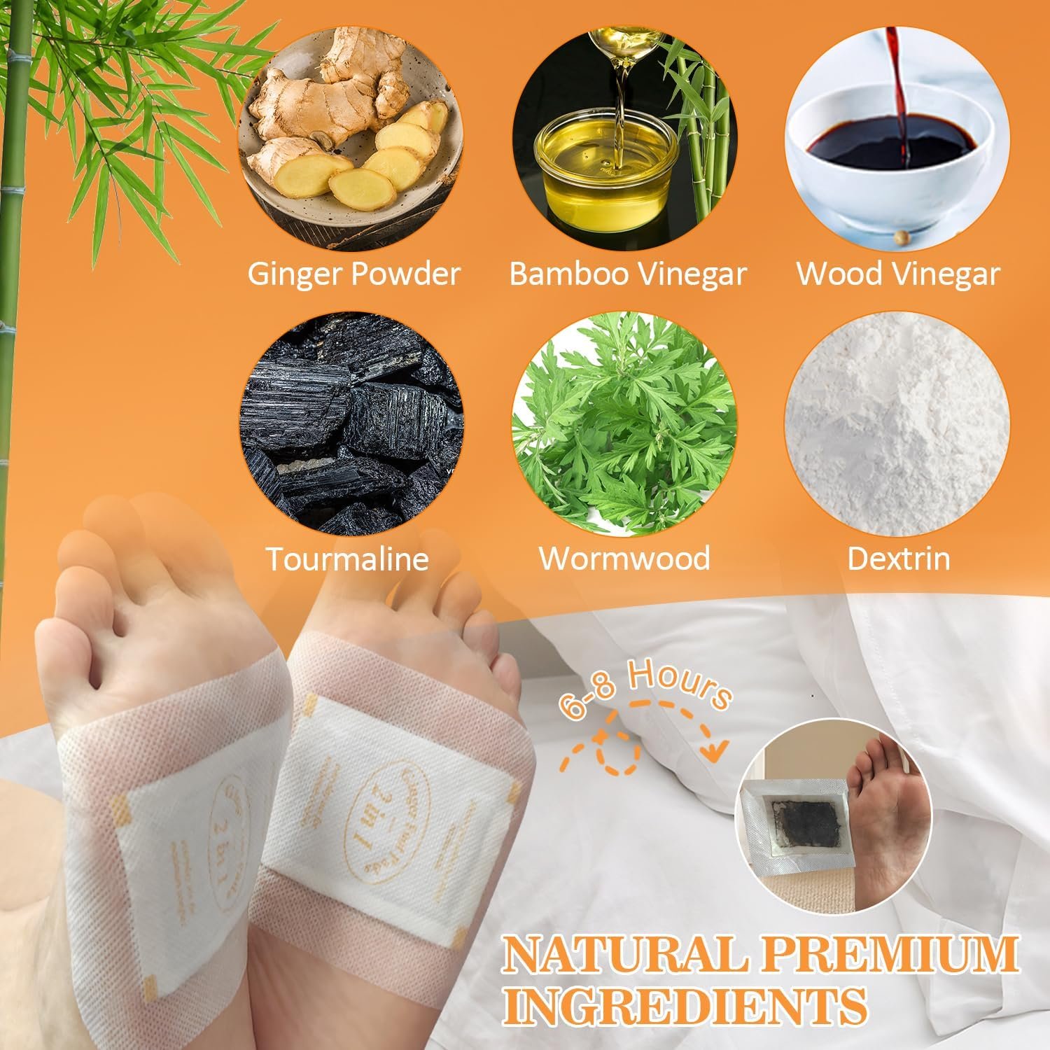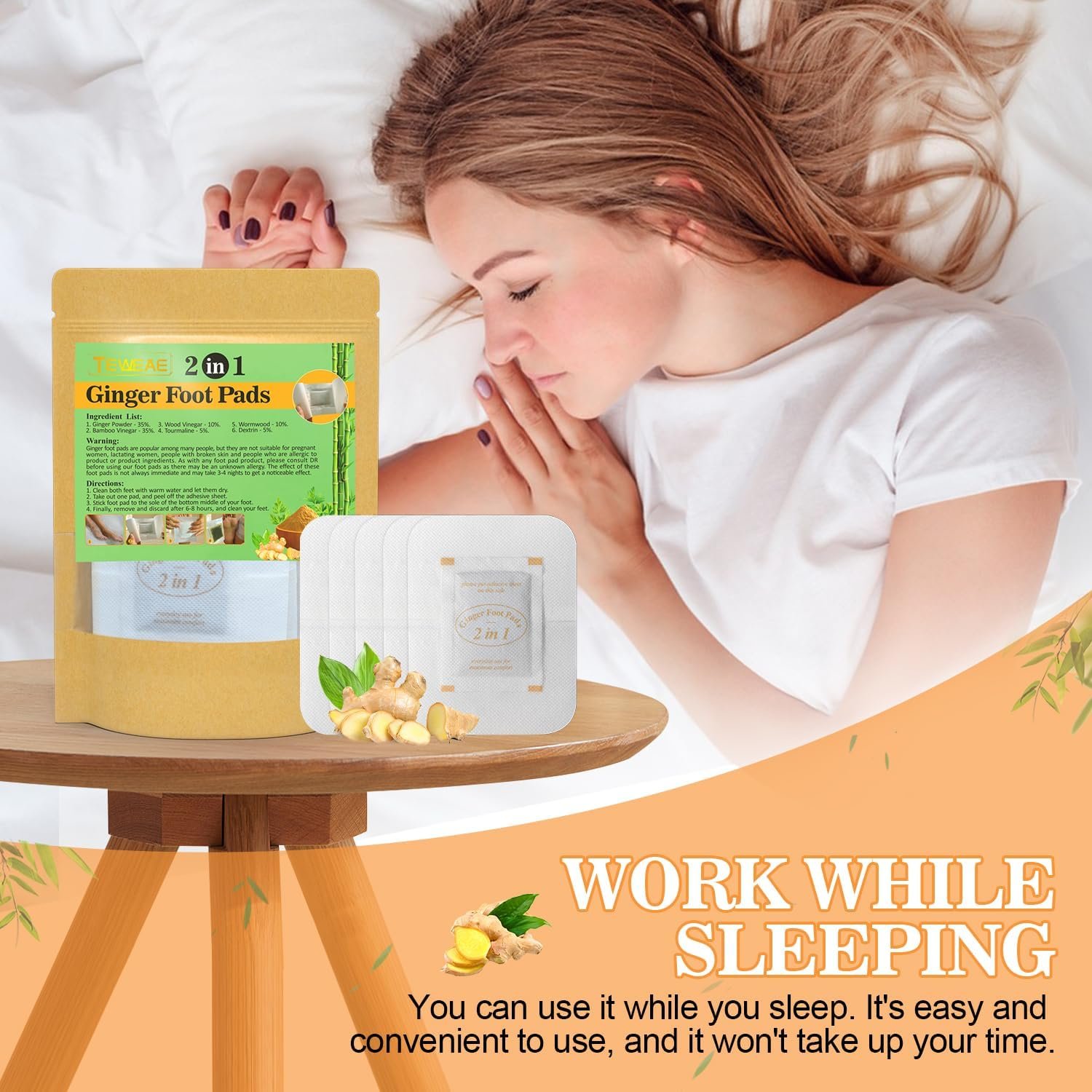 2. GINGER FOOT PADS: Our foot pads are made of natural ingredients like bamboo vinegar and ginger, wormwood powder, say goodbye to the disgusting odor, everything is only for health and safety