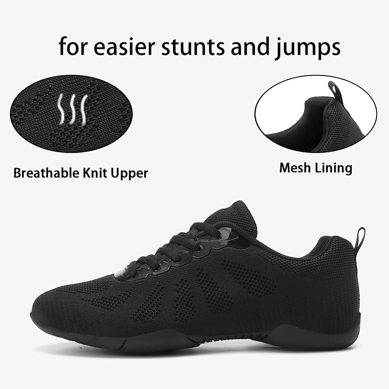 Kuikeiu Cheerleading Shoes Details: Color: White,BLACK Outsole: Rubber Upper: Breathable knit Range: 28-44 EU Size Occasions: Cheerleading, Competition, Gymnastic, Cheer practice, Stunts, Tumbling, Fitness, Aerobics