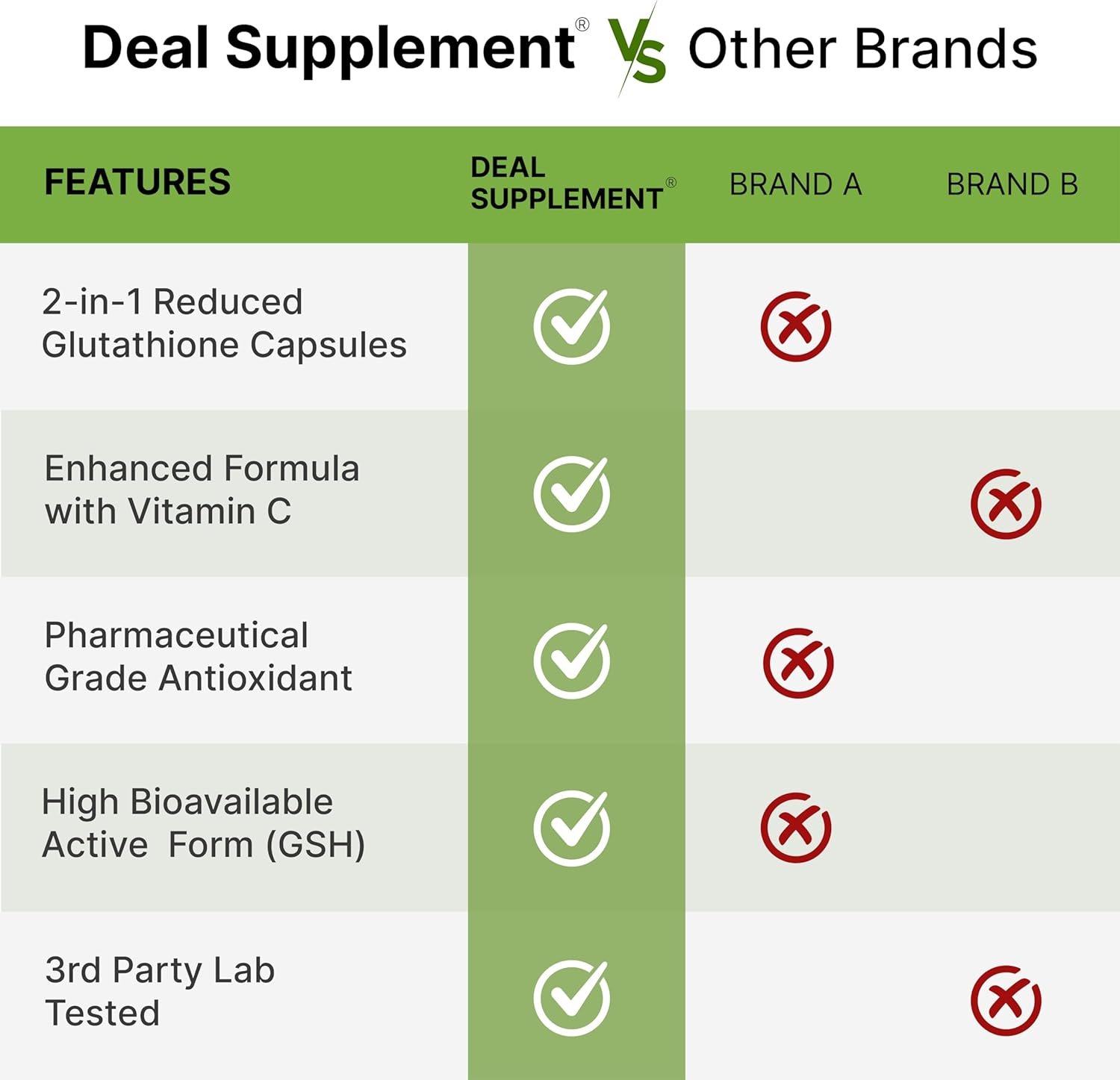 Active Form – Deal Supplement reduced glutathione (GSH) provides an active form to combat free radicals in the body, as well as supporting the regeneration of vitamin C and E in the body.