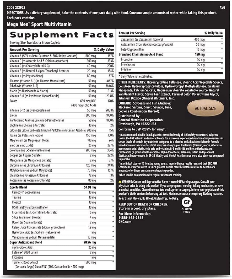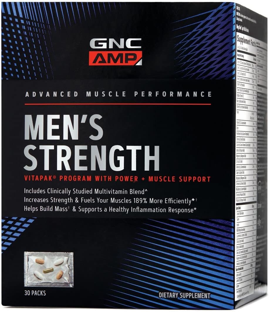 GNC AMP Men’s Strength Vitapak Program primes your body for an ultimate workout. It combines three science-based formulas to help achieve your everyday nutritional goals as you build muscles and strength. Our 3-step program includes Power + Muscle Support, Energy + Endurance, and Focus + Alertness. INCREASE STRENGTH: Move up to 9.5x more weight! Packed with the clinically-studied GNC exclusive Creatine HCl 189, you can train harder than ever before, helping to preserve muscles when restricted calories are part of your regimen. ENHANCE ATHLETIC PERFORMANCE: Our Vitapak combines high-quality anabolic primers and multivitamins for healthy inflammation response support. Fueled by clinically studied ingredients, this package helps your body thrive under stress and gives you results you can see and feel. Your muscles quickly absorb our high-performance 3-step combo for rapid gains. It’s formulated PEG Creatine HCL and is 189% more absorbable than traditional creatine monohydrate. As a dietary supplement, take the contents of one pack daily with food. For over 85 years, GNC has been the leading global health and wellness brand providing the best in performance inspired nutrition. We are committed to meeting the highest standards while applying the most up-to-date advances in nutritional science. Above all else, GNC aims to inspire people to live well.