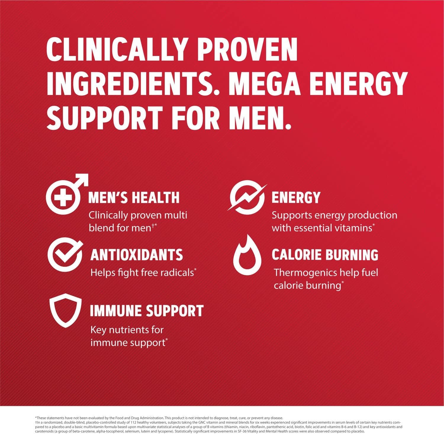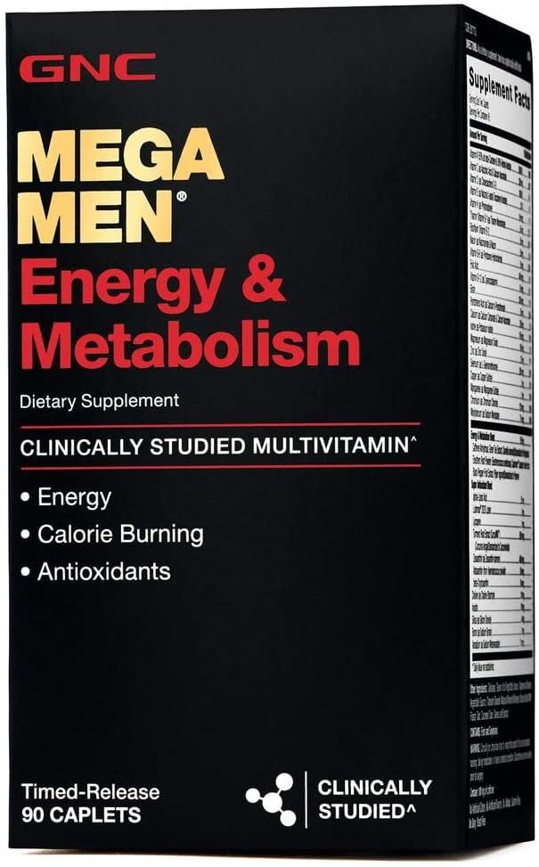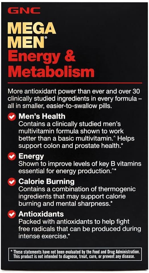 GNC Mega Men Energy and Metabolism is a multivitamin that delivers the vitamins and minerals essential for male health and well-being. It offers B-12 and B-6 vitamins that help maximize energy levels.