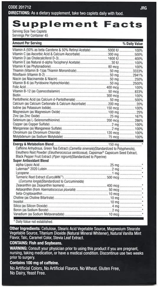 Complete men’s multivitamin supporting overall health, plus support for energy production, metabolism, and mental sharpness. Now in smaller, easier-to-swallow pills.