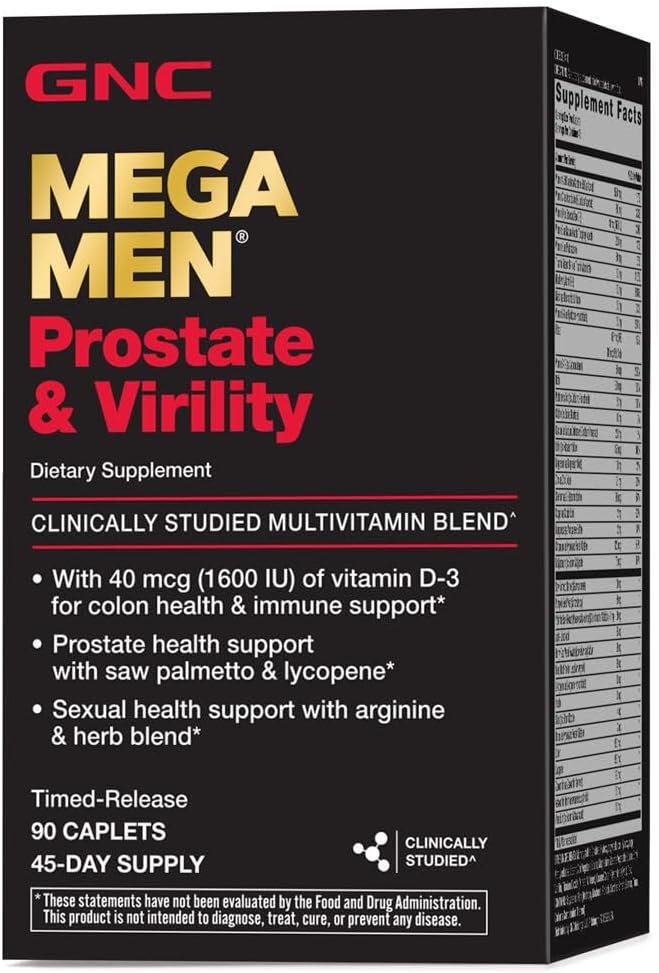 GNC Mega Men Prostate & Virility – 90 Caplets: Clinically Studied Multivitamin Blend* The Mega Men Prostate & Virility multivitamin blend supports overall, prostate, and sexual health. This blend includes vitamin D-3, which emerging research suggests may play a role in supporting colon and immune health.* Powerful antioxidants help your body defend against the damage of free radicals.* Saw palmetto with selenium and lycopene helps support optimal prostate health and normal urinary flow.* This