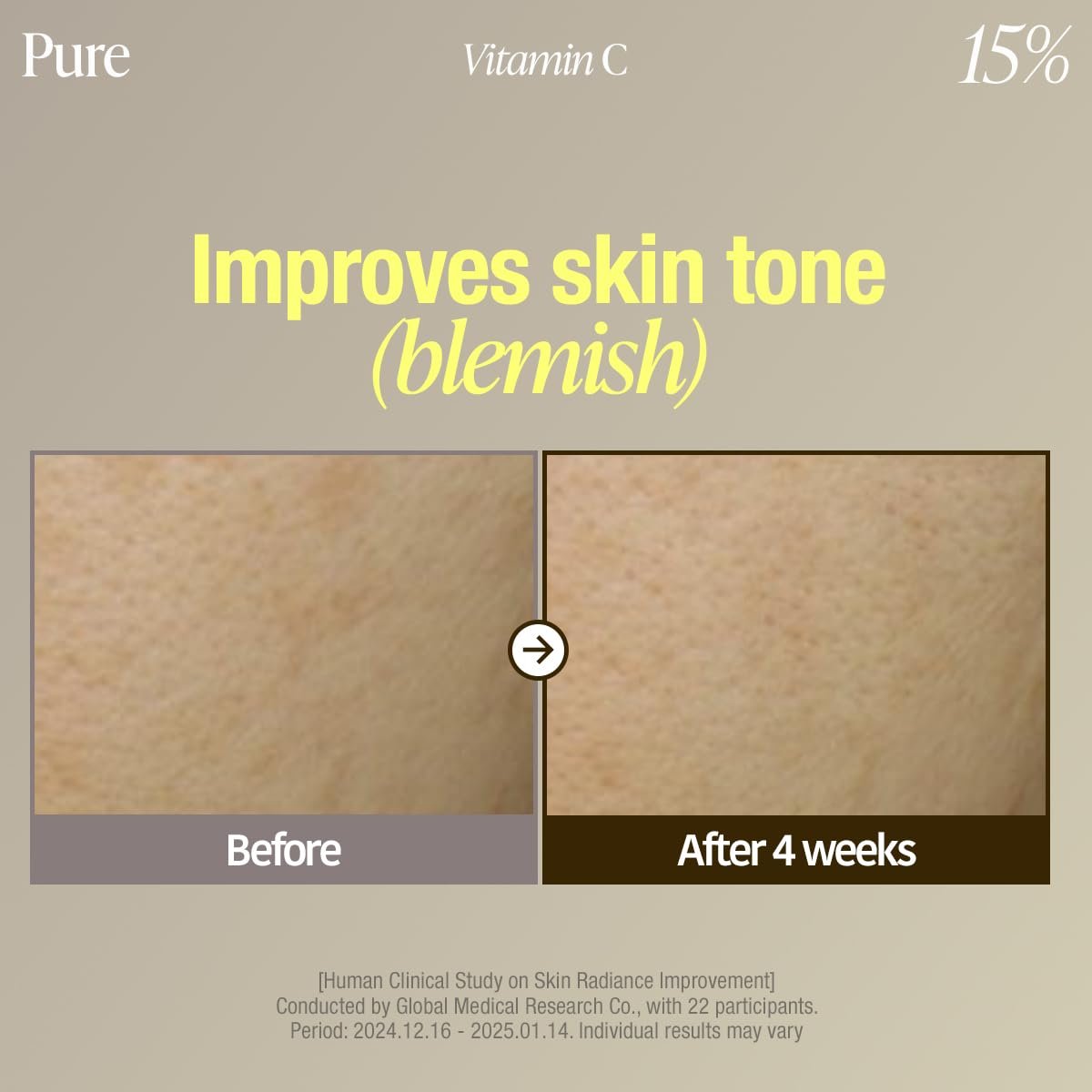 [15% Pure Vitamin C for Visible Results] Infused with 15% pure Vitamin C, this concentrated ampoule delivers targeted care for a brighter, more even skin tone. Experience the benefits of enhanced moisture, improved skin clarity, and a revitalized complexion—all in one formula.