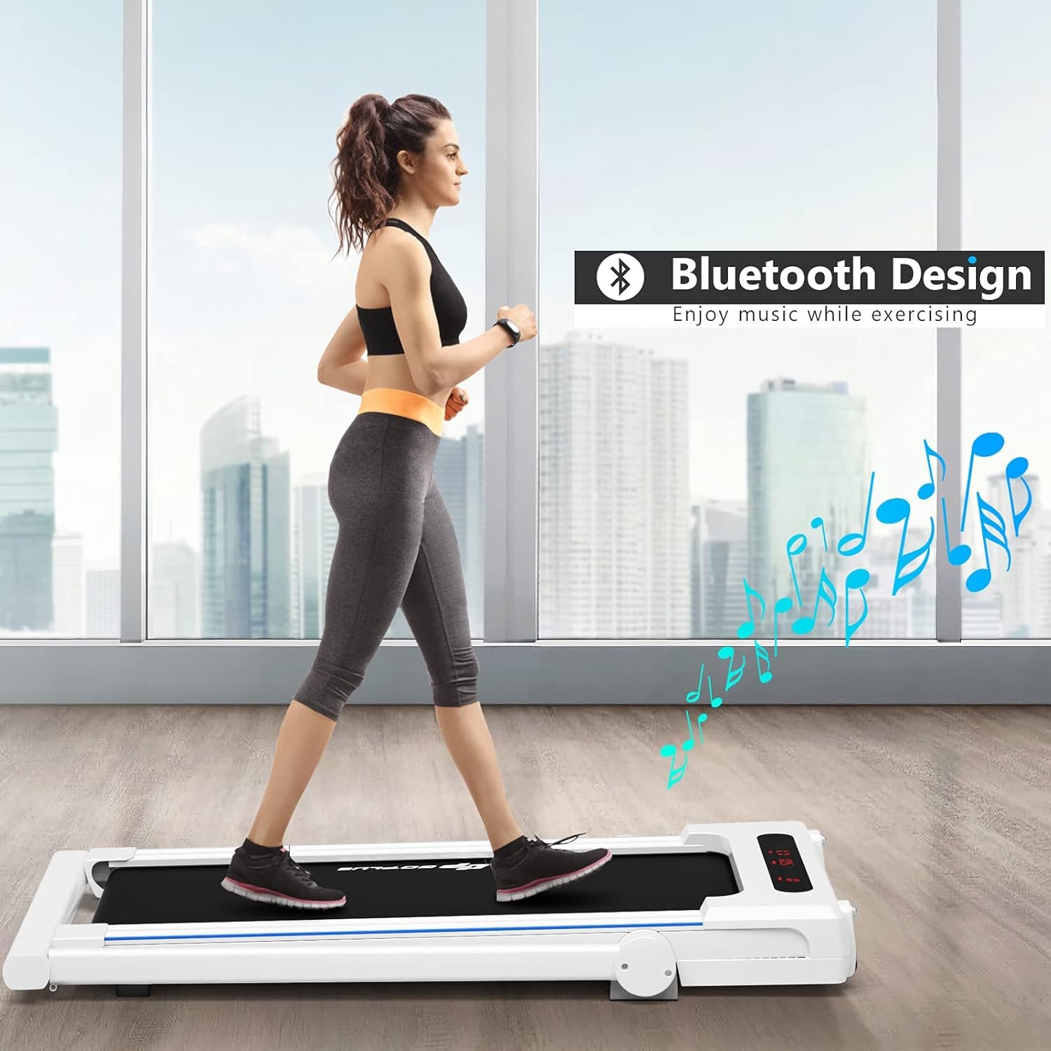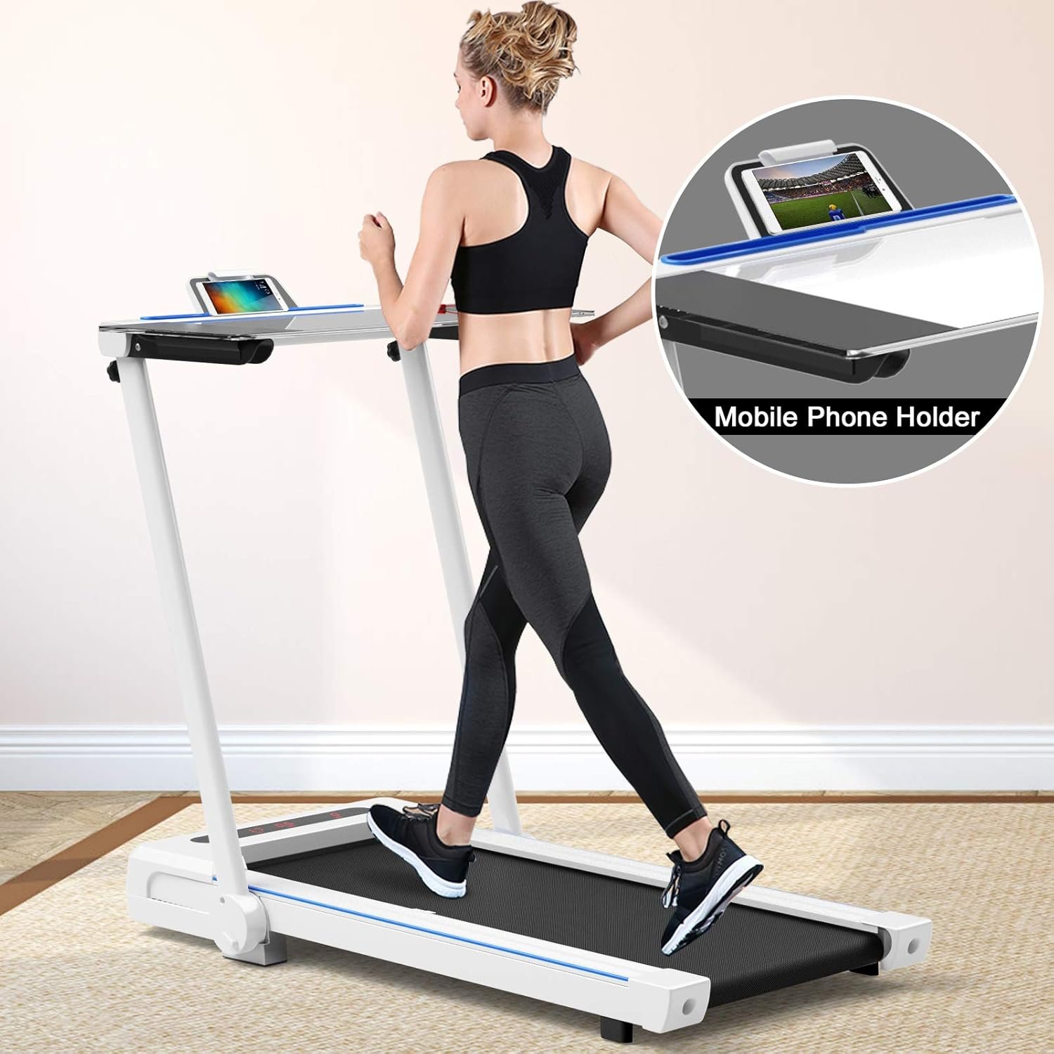 【Bluetooth Speaker & Phone Holder】By connecting your electronic device to the treadmill via Bluetooth, you can enjoy music while exercising. In addition, there is a phone holder on the display for you to put your phone on and watch your favorite TV series or movies.