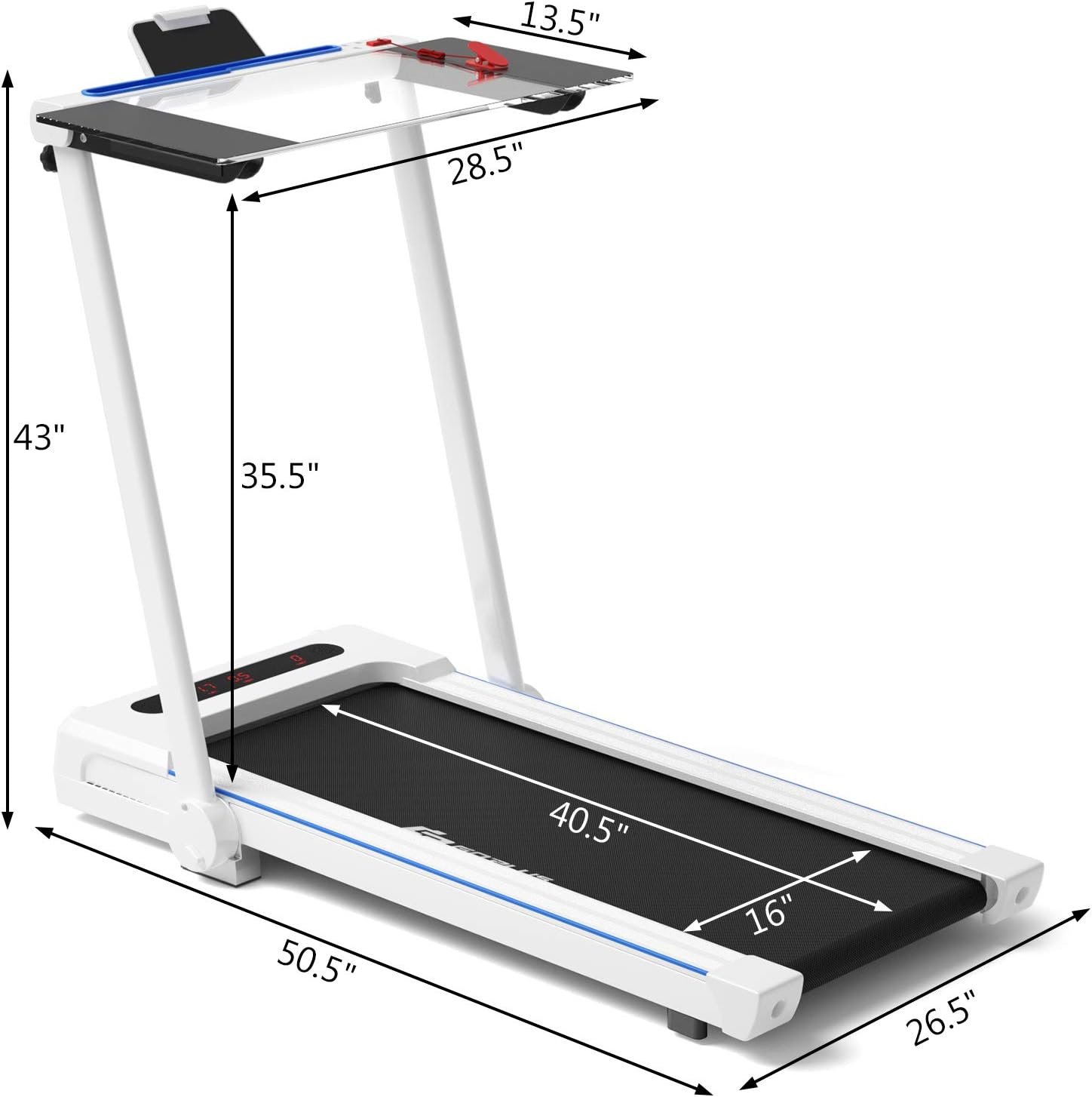 【Innovative 3-in-1 Treadmill】Our 3-in-1 Goplus folding treadmill perfectly combines the advantages of treadmills, walking machines and working machines. The large and sturdy Acrylic tabletop can be used to place computers or other items, so you can work while exercising. In addition, you can choose to run or jog according to your physical fitness.