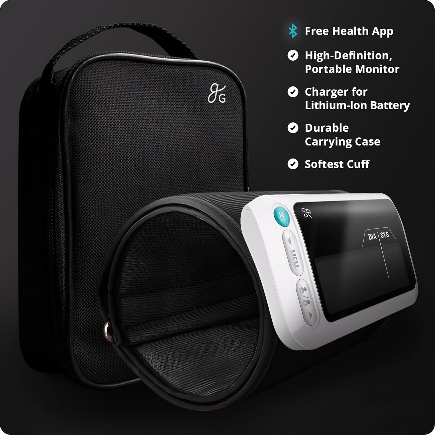 Everything You Need: Greater Goods smart blood pressure machine simplifies heart health tracking and on-the-go monitoring. This Bluetooth blood pressure monitor is compatible with two users.