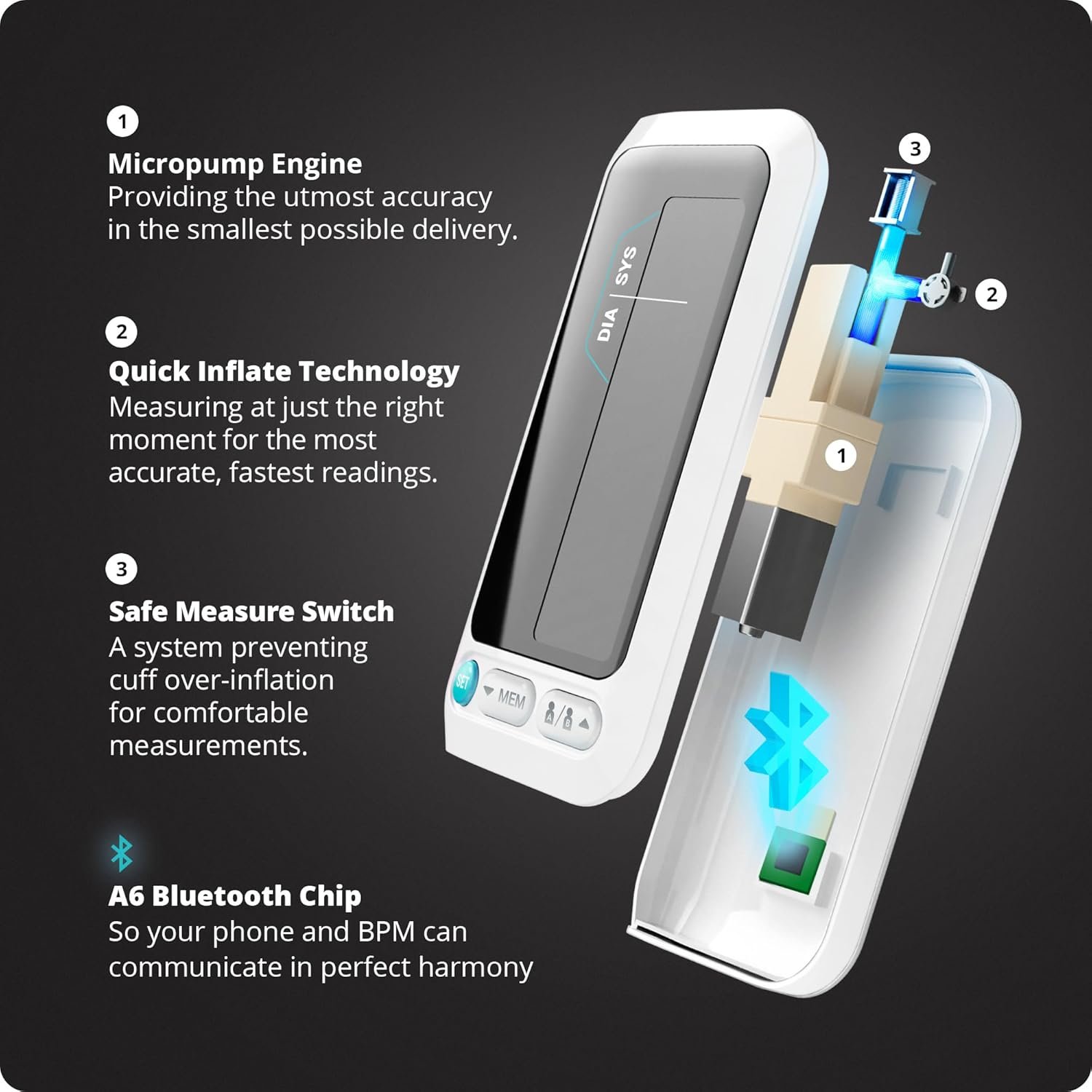 Performance and Value: A reasonably priced smart blood pressure monitor with top-tier accuracy. It starts reading at the beginning of the cuff’s expansion for faster, more precise results.