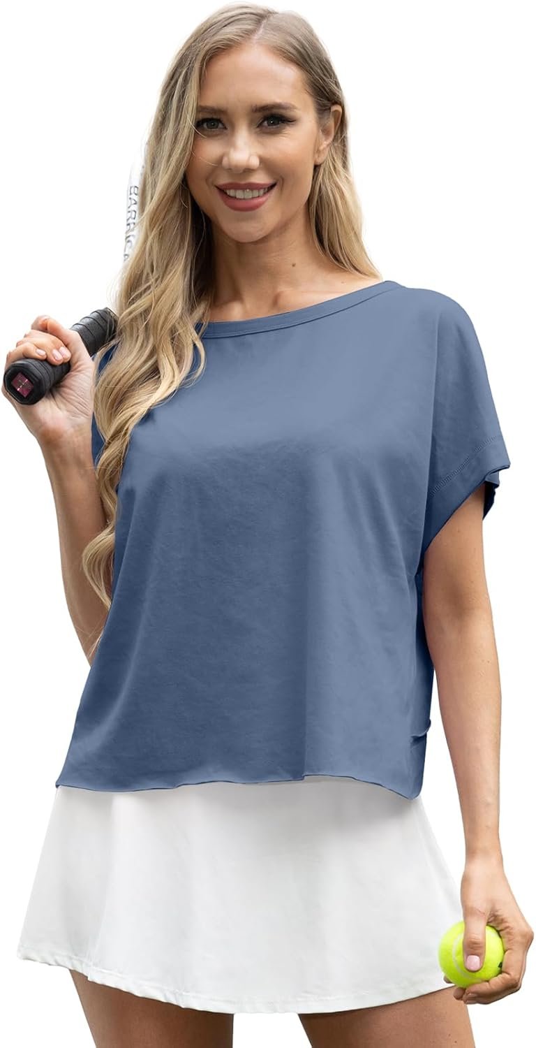 GRECERELLE Women’s Open Back Workout Tops Backless Athletic Shirts Cas…
