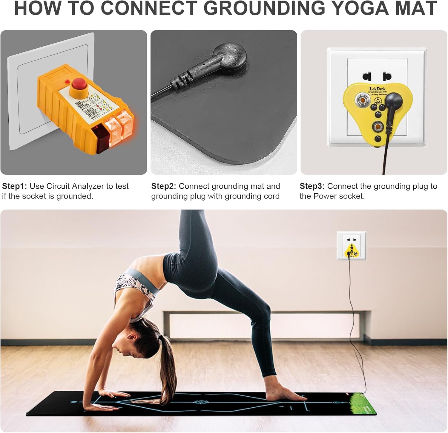 【WHY Choose US】LekDrok Grounding Yoga Mat is not a common Yoga mat. It keeps you grounding all the time when you are doing Yoga. GROUNDING Improves Sleep, Increases Energy, Reduces Inflammation, Anxiety, Pain, inflammation, Eliminates static, Headache Relief, etc.
