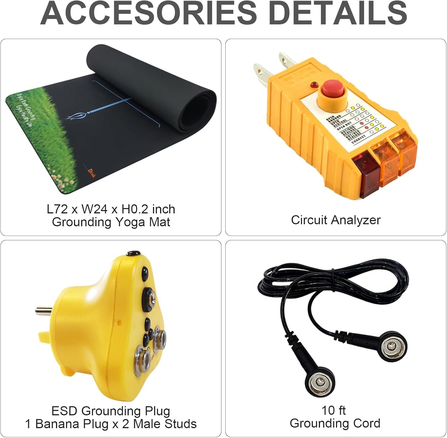 【Specifications】Grounding Yoga Mat Surface Resistance: 10E3-10E5 ohms. Size: 72″ length 24″width 1/4” thickness. Made with high density eco-friendly Thermoplastic Elastomer. The premium mat comfortably cushions spine, hips, knees and elbows on hard floors while keeps you balanced.