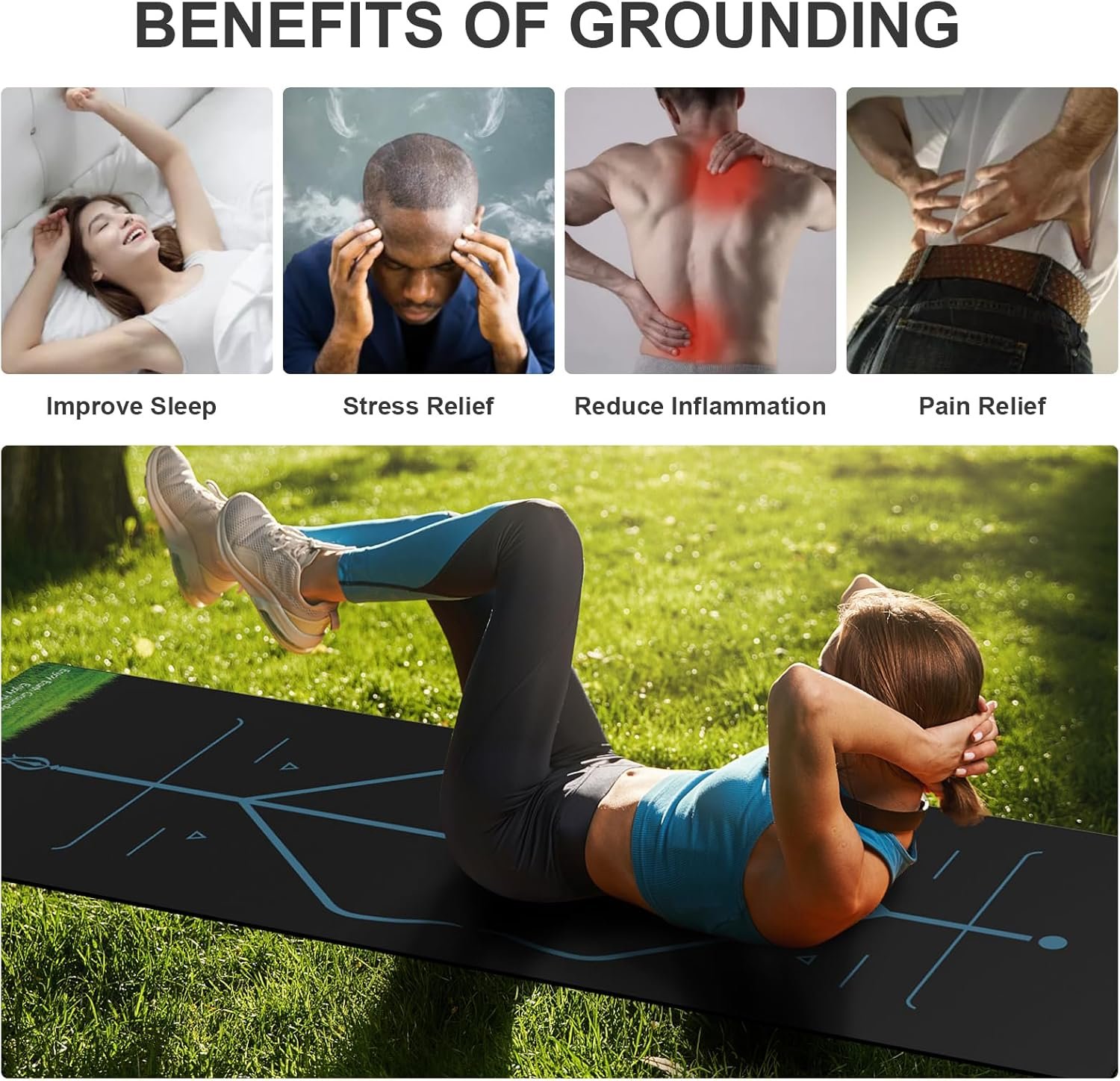 【Applications】Yoga at home which equals on the grass yard outdoor. Keep you grounding at all your yoga time. It can be used as Sleep Mat, Standing Desk Mat, Kitchen Mat, Anti Fatigue Floor Mat, etc. And it’s a very very good gift for the one you loved who no chance to be grounded.