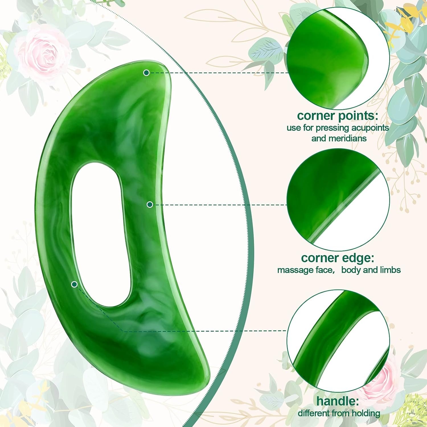 What’s contains: you will receive 1 piece of gua sha tool with handle in green, and its size is about 7 x 2.7 inches, large enough for you to quickly complete a large area, which will bring you a pretty convenience, saving your time and efforts