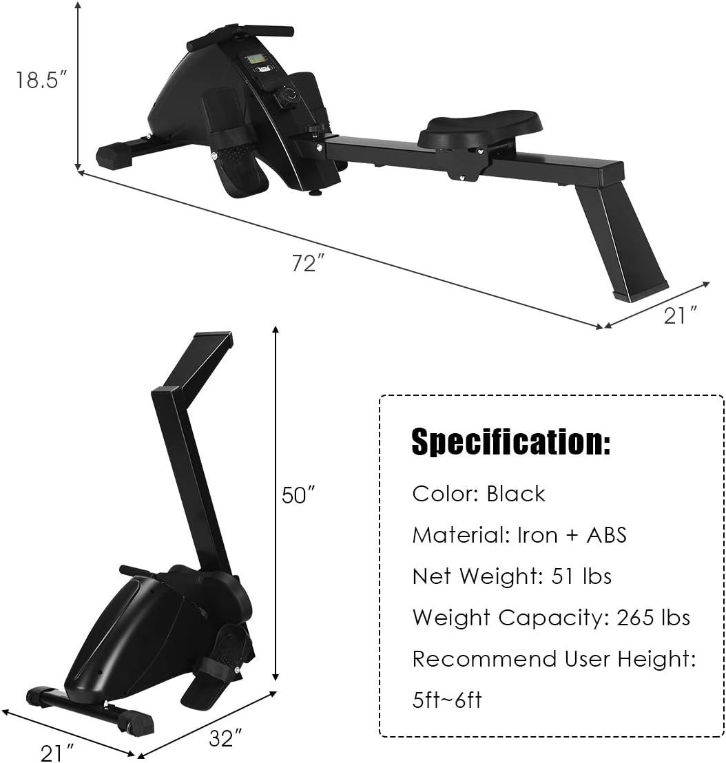 【LCD Monitor for Real-Time Monitoring】Coming with a digital LCD monitor, the rowing machine is able to show time, distance, stroke count, total count and calorie data. It allows you to keep track of your training process and modify your fitness goals appropriately to maintain your motivation.