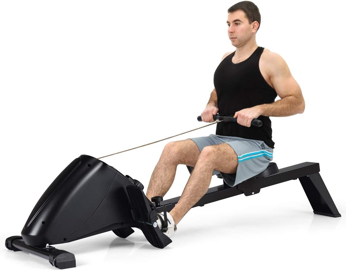Our fitness rower is good fitness equipmentfor indoor aerobic exercise. Compared withtreadmills and bicycles, rowing machines have better fitness effects becausethey can exercise multiple muscle groups. 10 levels ofresistance are for you to adjust to meet your fitness intensity needs atdifferent stages, which better help you shape your body and enhance yourcardiopulmonary function. With an LCDdisplay, you can monitor time, distance, stroke count, total count and caloriedata at any time. Adjustable pedals can fit different sizes of feet so thatmore people can experience exercise. In addition, its non-slip design can enhancesafety. The padded handle bars bring you a comfortable fitness environment. It features a foldable design that allows users tostore it conveniently when not in use.