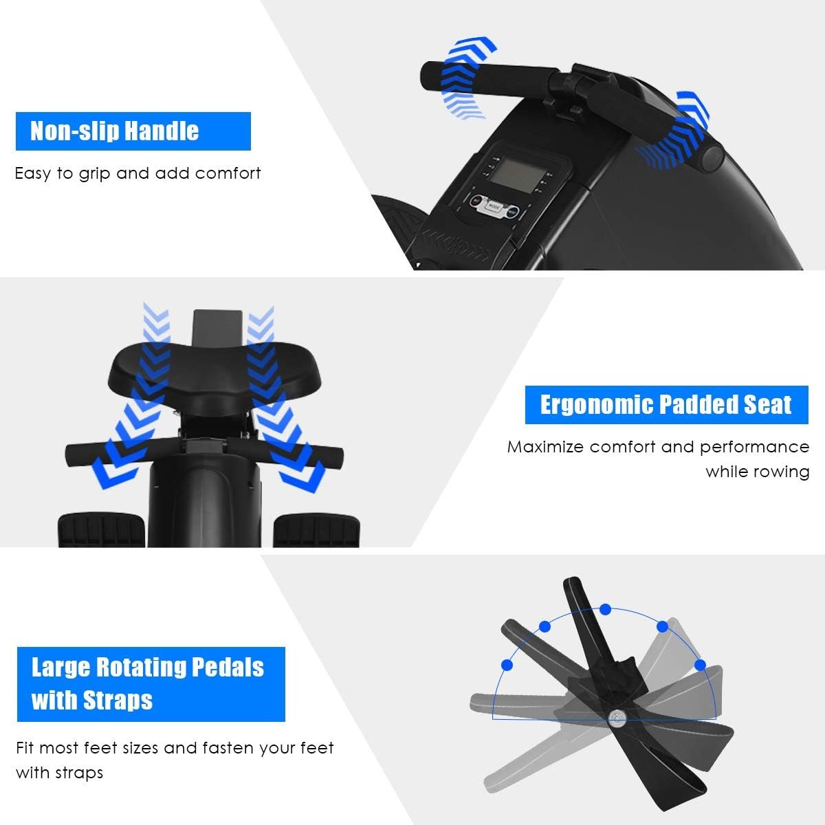 【Non-Slip Foot Pedals & Padded Handle Bar】The pivoting foot pedals with straps can be used to firmly fix your foot, meanwhile its anti-slip design increases the friction resistance, which will ensure safety during strenuous exercise. Besides, the padded handle bars provides a comfortable exercising experience.