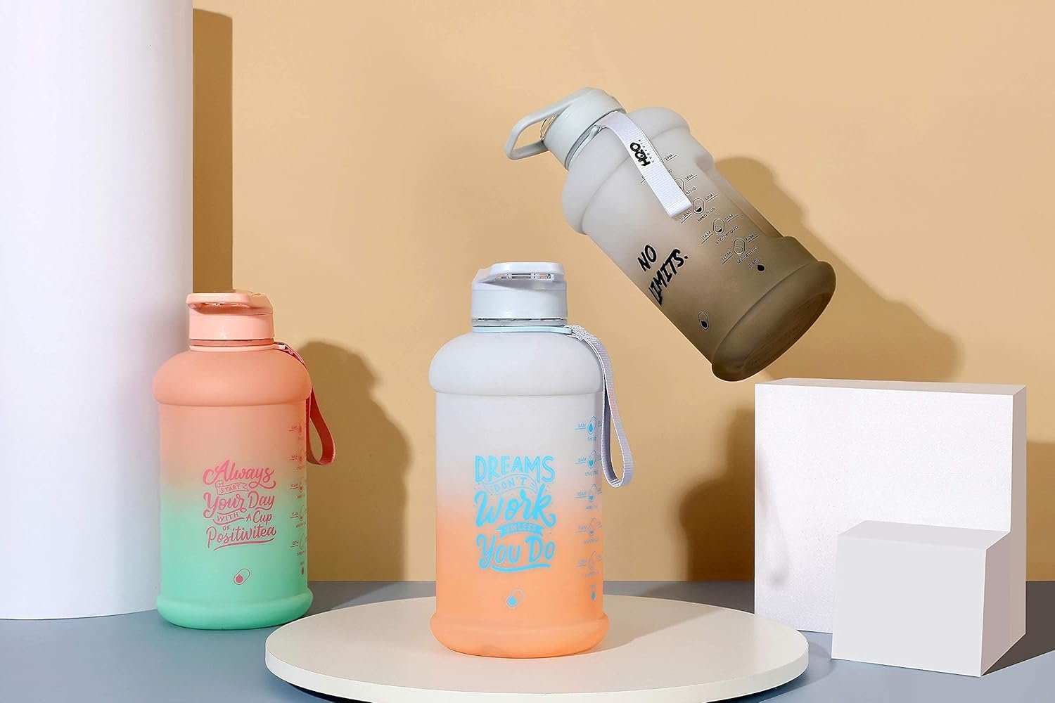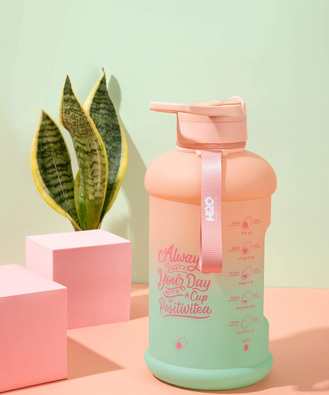 HALF GALLON TIME MARKERS: This is the perfect daily water intake bottle – clear measurements track a half gallon fill, so you can monitor your water intake every 12 hours! Alongside the measurements, we added inspirational words to keep encouraging you towards your hydration goal.