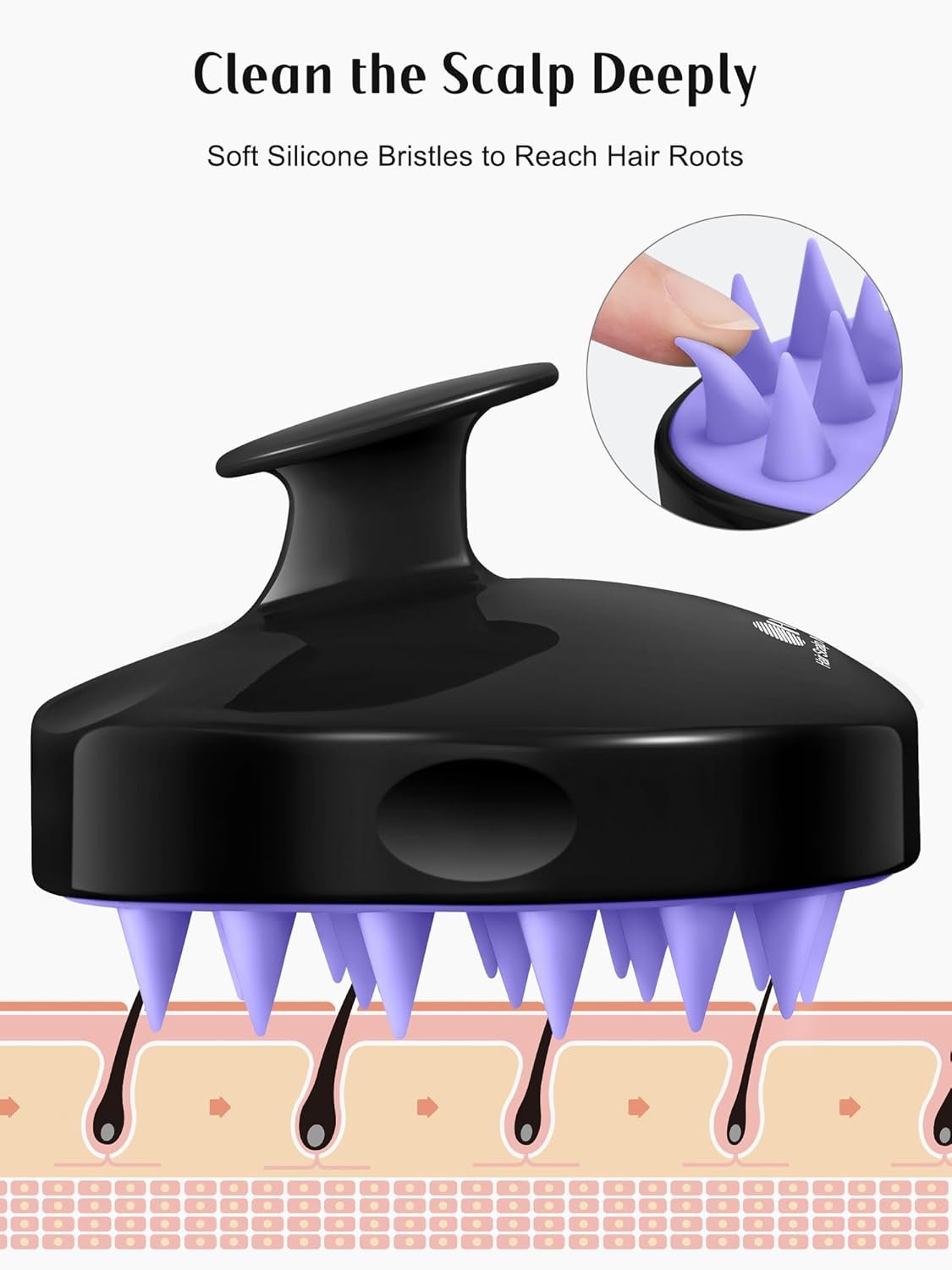 Multiple Benefits: The scalp scrubber can be used in the shower, and apart from cleaning, it also massages the scalp, relieves itching, reduces stress and help hair growth, making it the hair washing tool