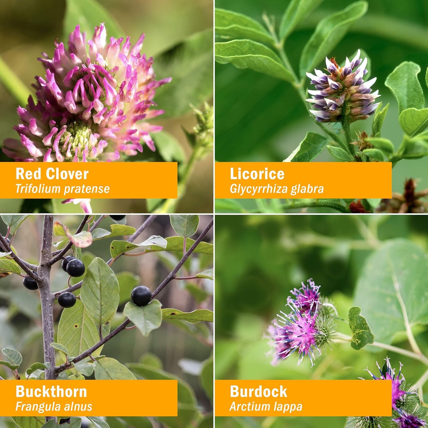 Expertly formulated with Red Clover, Licorice, Burdock and other rapidly absorbed liquid herb extracts.