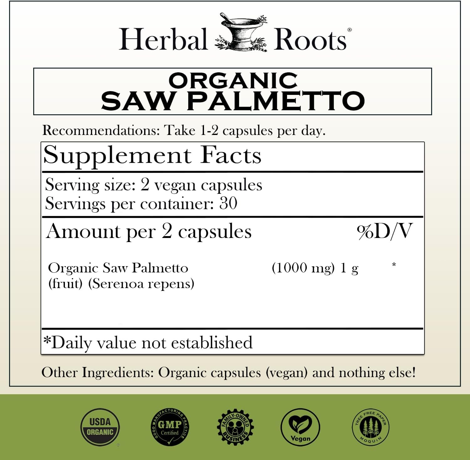 Ingredients: Organic saw palmetto fruit (Serenoa repens).