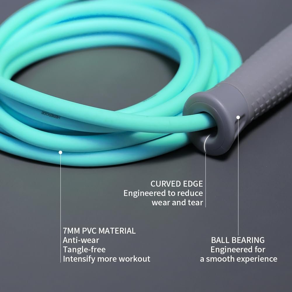 ENHANCED PERFORMANCE. The ball-bearing system offers a smooth experience during your workout. It is not your usual weighted skipping rope, it has been carefully designed for speed, cardio & tricks, intensity & strength resistance workout.