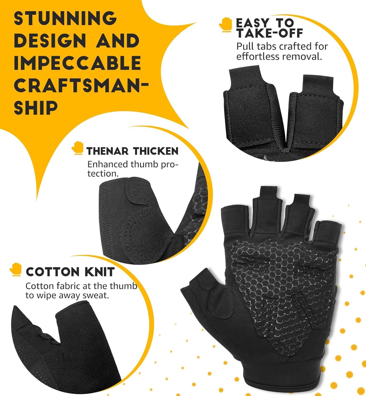 💪 HIGH QUALITY & UNIQUE DESIGN – Made with lightweight fabric and breathable Lycra/Nylon MICRO FIBER, durable, anti-abrasion. The stylish open mesh backing design and pores in the glove allow enough ventilation that reduces sweating when doing those vigorous workout regimes, keeps your hands dry and comfortable. Soft towel construct on the back of thumb can help wipe sweat off quickly during training or doing other exercise. The pull buckle on the fingertip designed to make it easy take off.