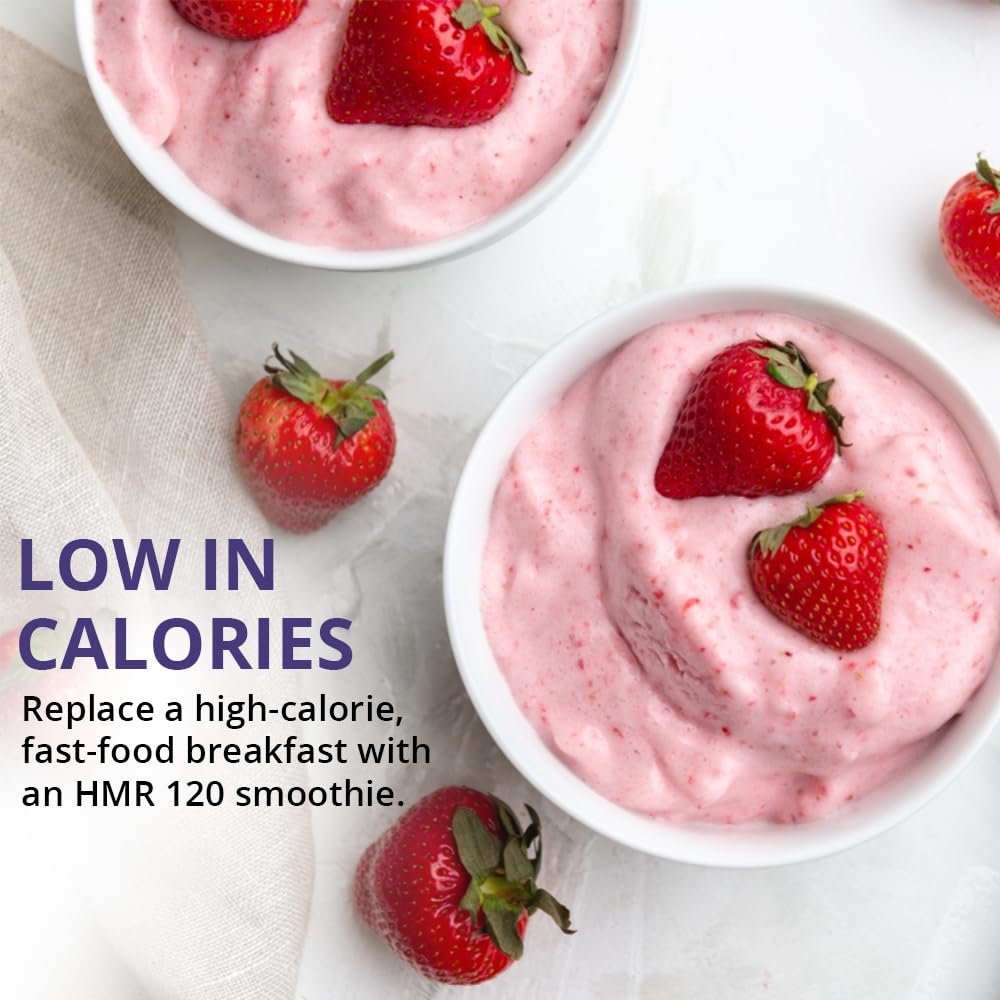DELICIOUS & NUTRITIOUS Weight loss never tasted so good! With HMR’s decadent strawberry flavor, you’ll never need to sacrifice taste for a lower-calorie option. Each meal replacement shake provides 120 calories and 12 grams of protein per serving.