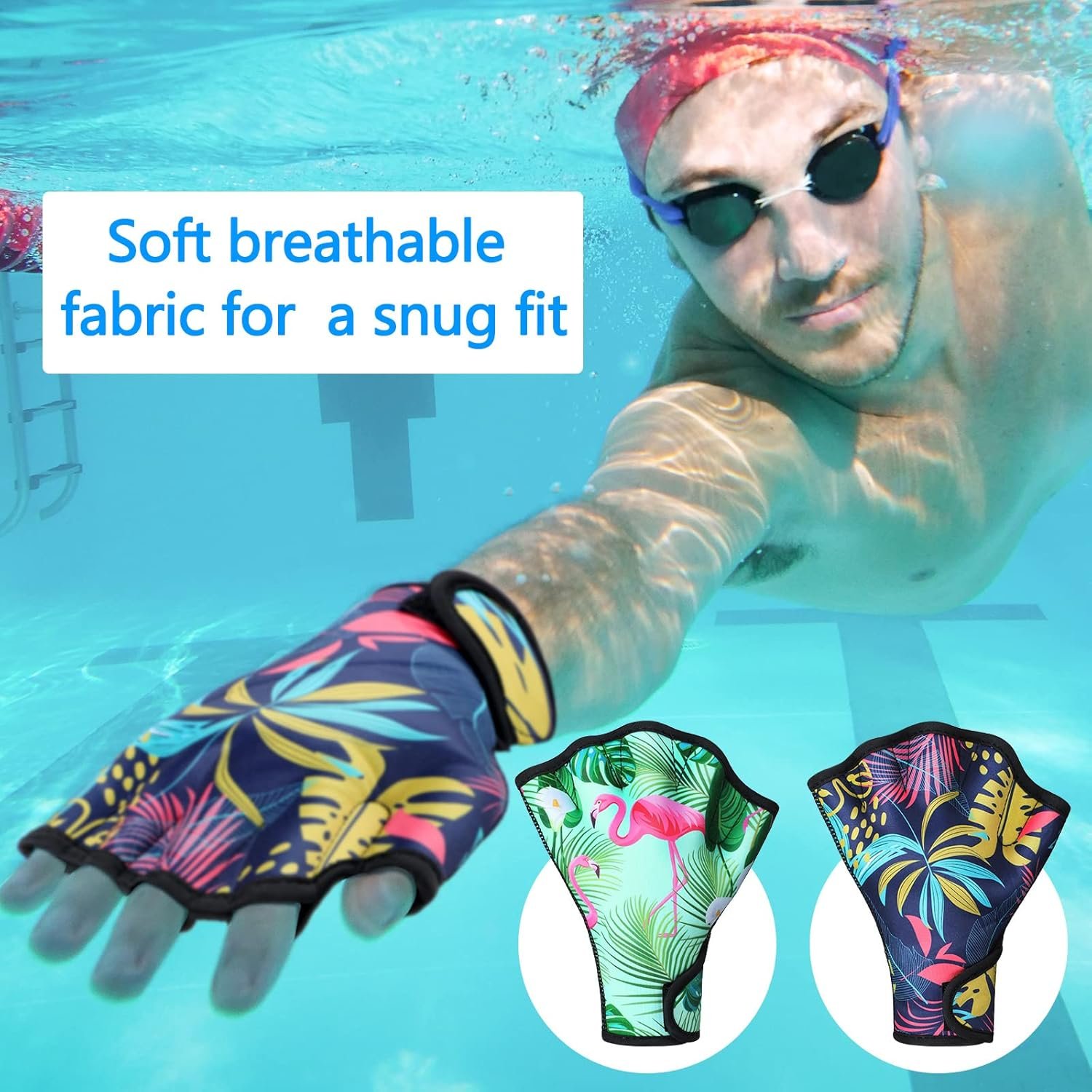 Customers find the swim fins have a nice design and colorful patterns. They provide good resistance for water aerobics and aquatic exercises. The gloves are well-made and durable, with no signs of tearing or damage. Many customers find them easy to use and fun to use, while others have mixed opinions on how well they fit.