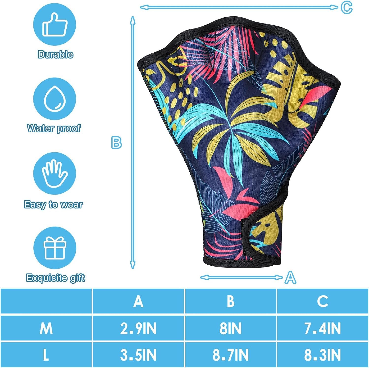 Waterproof and Serviceable: made of quality neoprene material, the webbed gloves for swimming are reliable and waterproof, close stitching between hand seams, soft and dependable, not easy to fade or break, easy to serve you for a long time
