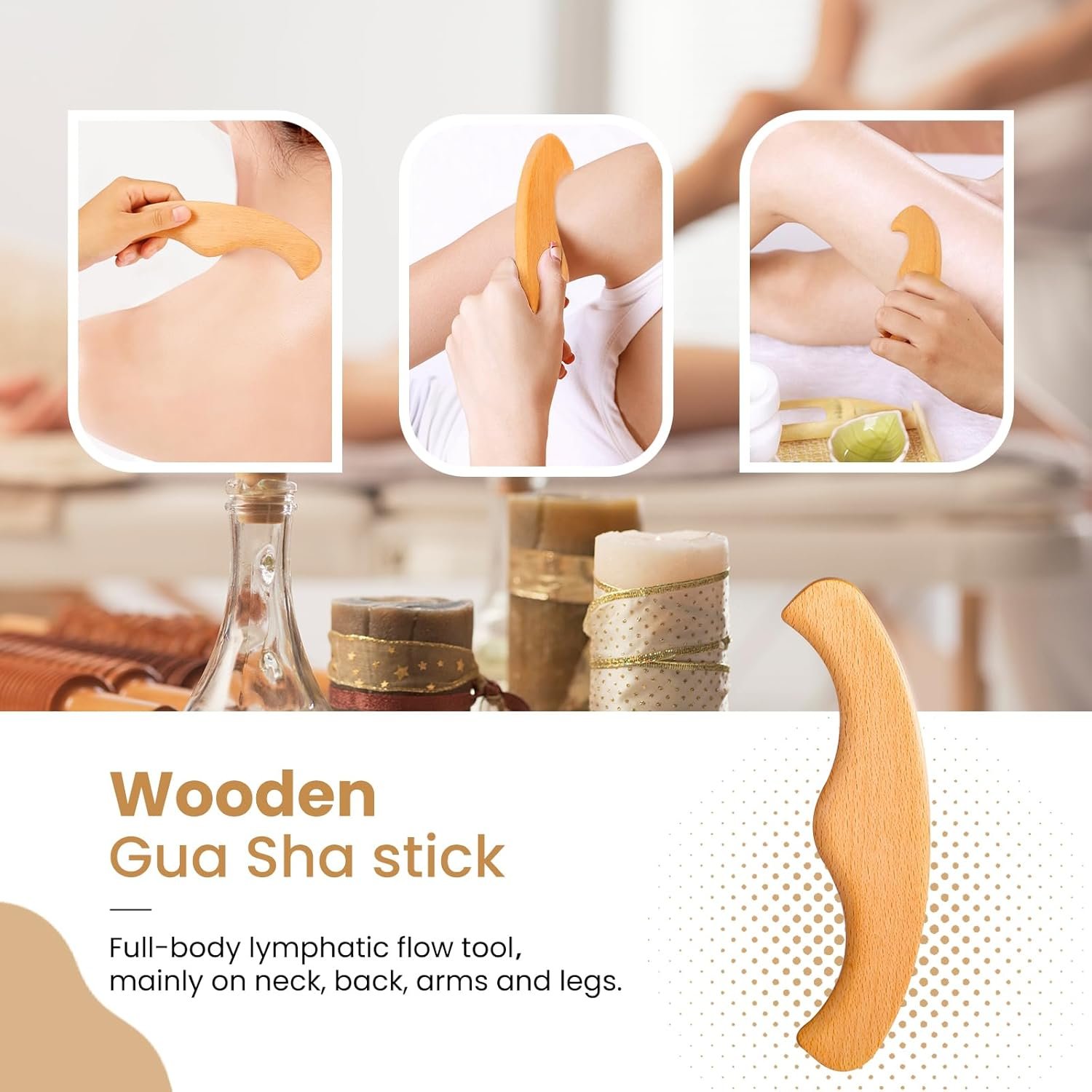 [Effortless Lymphatic Massage Tools]: Designed for simplicity and effectiveness! The lightweight wooden tools are easy to handle, making self-massage a breeze. Use the gua sha stick on areas like your neck, back, arms, and legs, while the curved massager is perfect for the face, abdomen, hands, and feet, helping to enhance circulation and encourage lymphatic drainage.