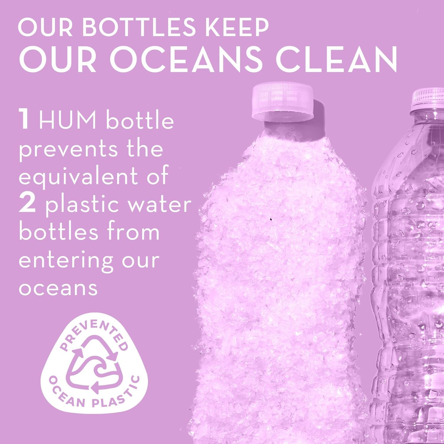 We want wellness for the planet too. Every 1 HUM post consumer bottles prevents the equivalent of 2 – 4 plastic bottles from entering our oceans.
