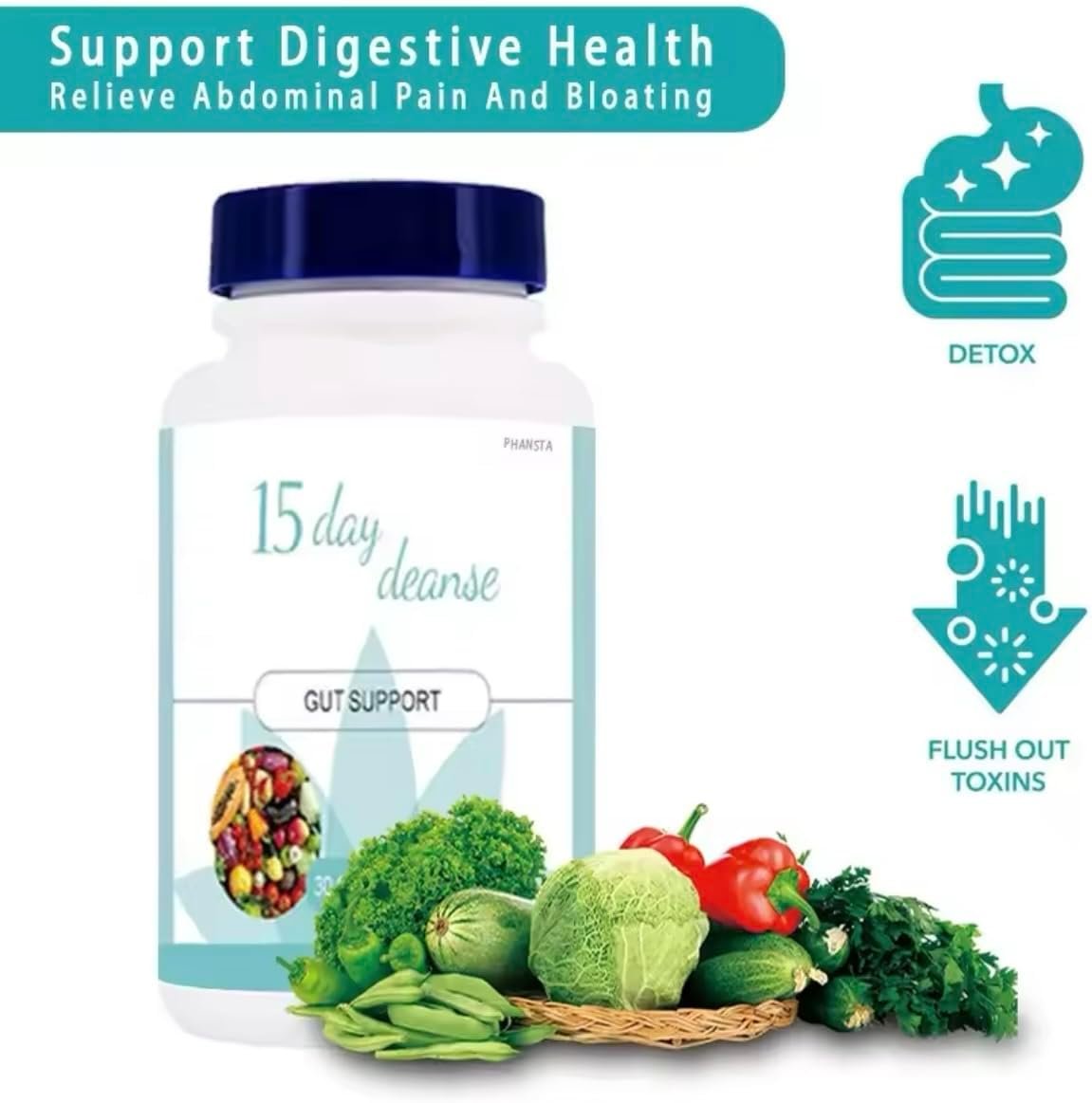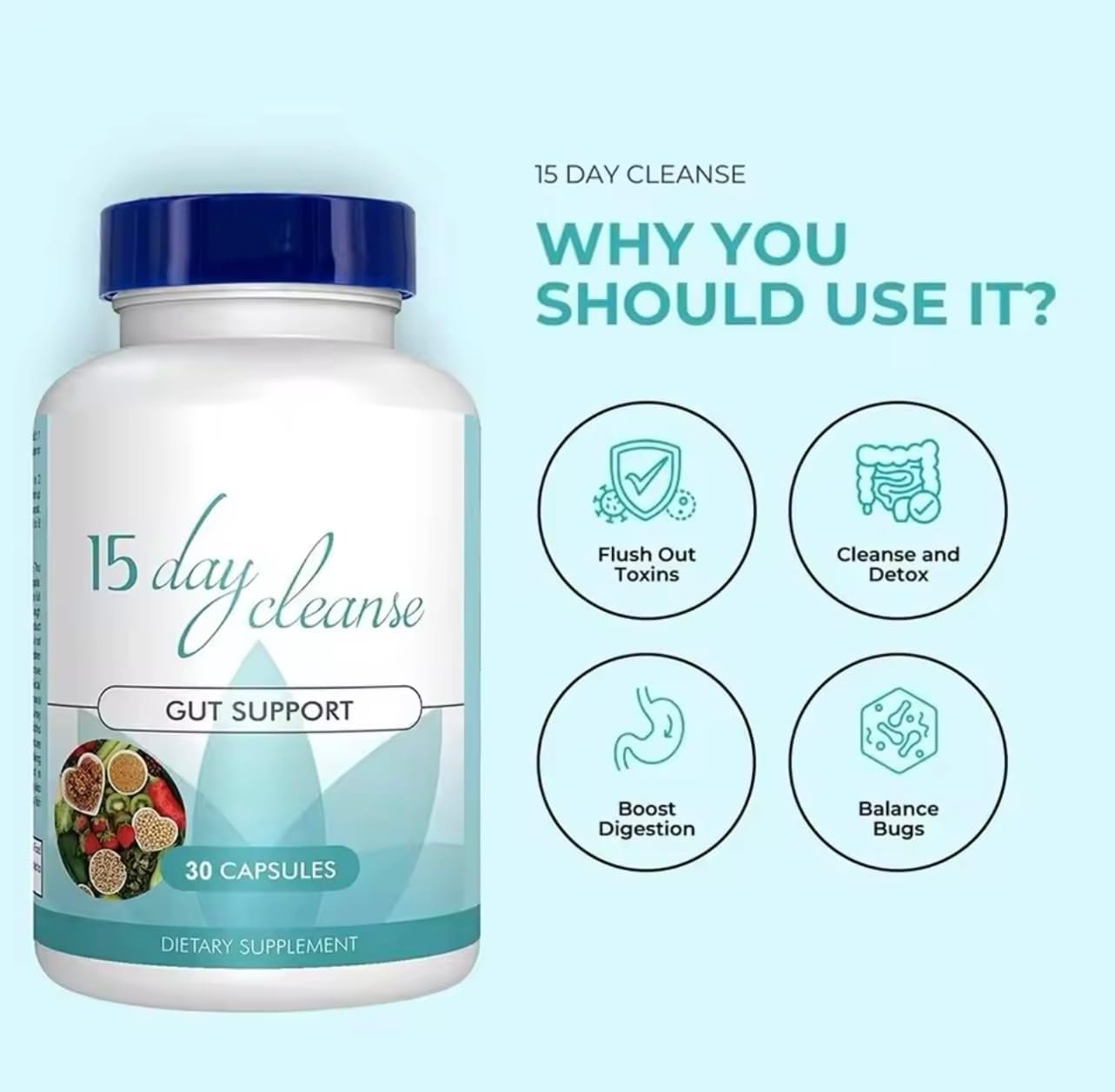 15 DAY GUT CLEANSE SUPPORT: 15 days cleanse & detox capsules help remove intestinal buildup and toxins from the body, promote healthy and regular bowel movements, help colon cleansing and detoxification. Combining Colon Cleansing with a healthy lifestyle can help support your overall health.