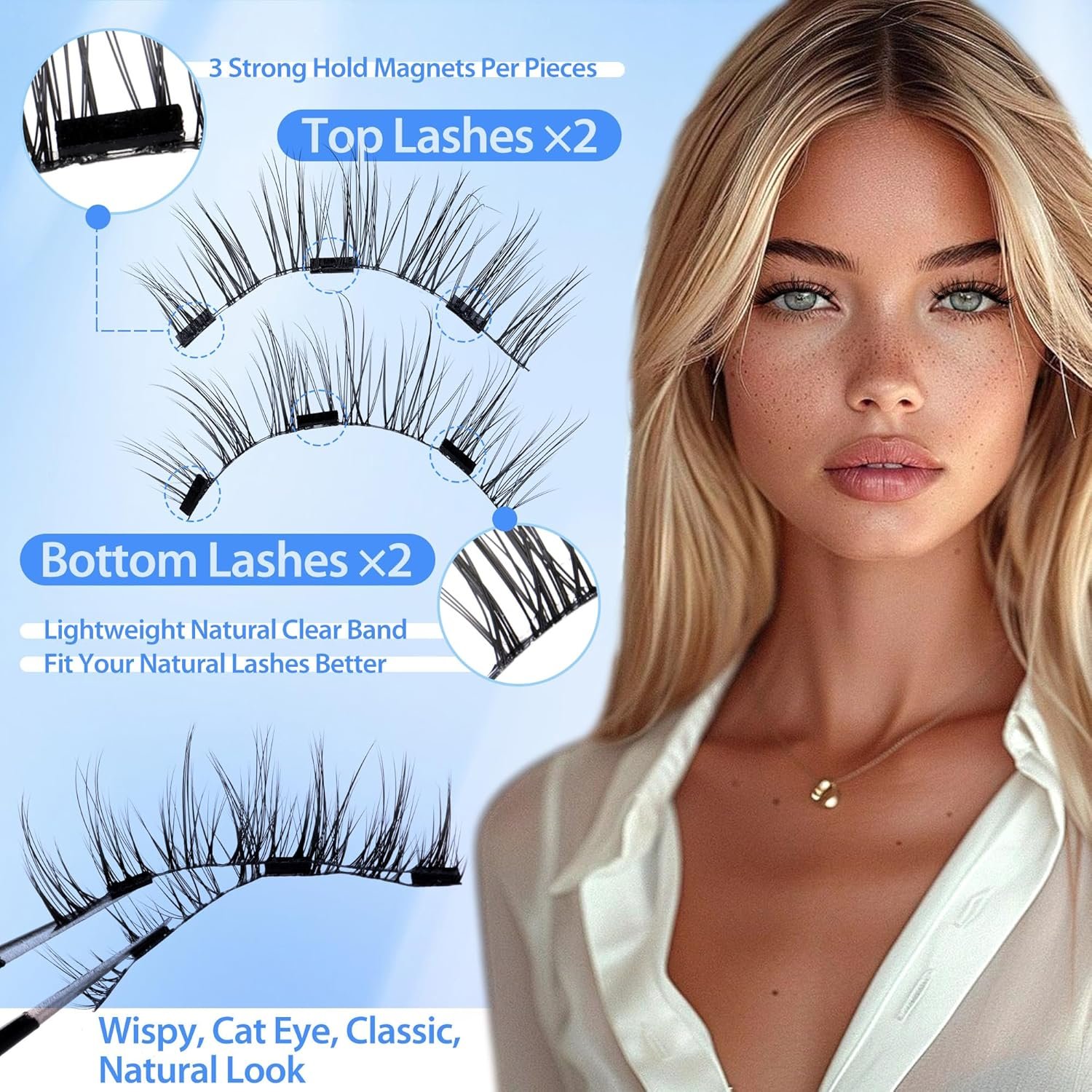 2 Pairs 2 Styles Magnetic Eyelashes – If you are sensitive to eyelash glue, you gotta try our magnetic eyelashes which is no glue needed yet still strong hold. We selected carefully and choose classic cat eye lash style, get a natural glamorous look in 3 seconds with magnetic lashes