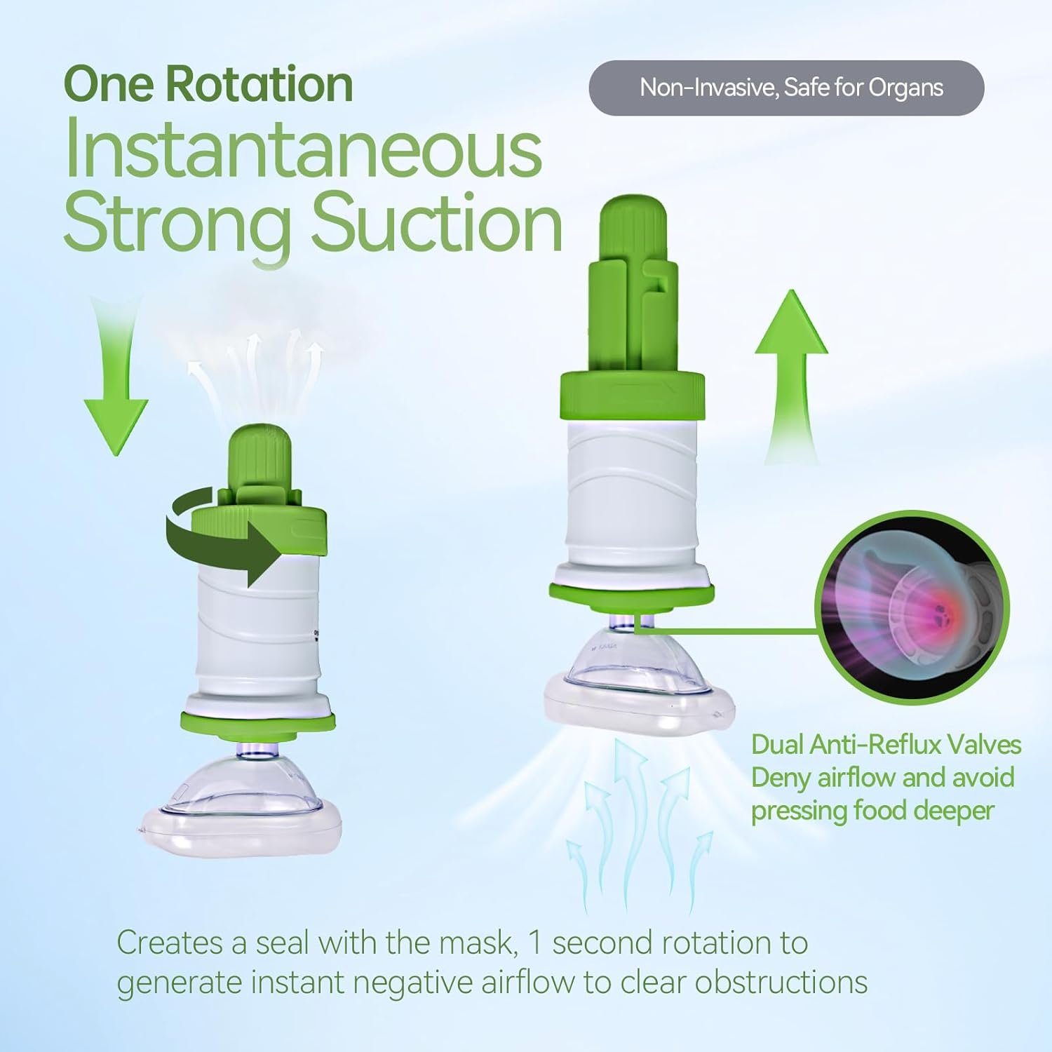 ⛑ 【Powerful And Effective Rescue Suction】Utilizing a high-pressure-to-low-pressure principle, our choking rescue device generates 33 kPa of instant suction force to swiftly and effectively expel obstructions. This ensures rapid and reliable removal of foreign objects from the airway, making it a critical tool for emergency situations.