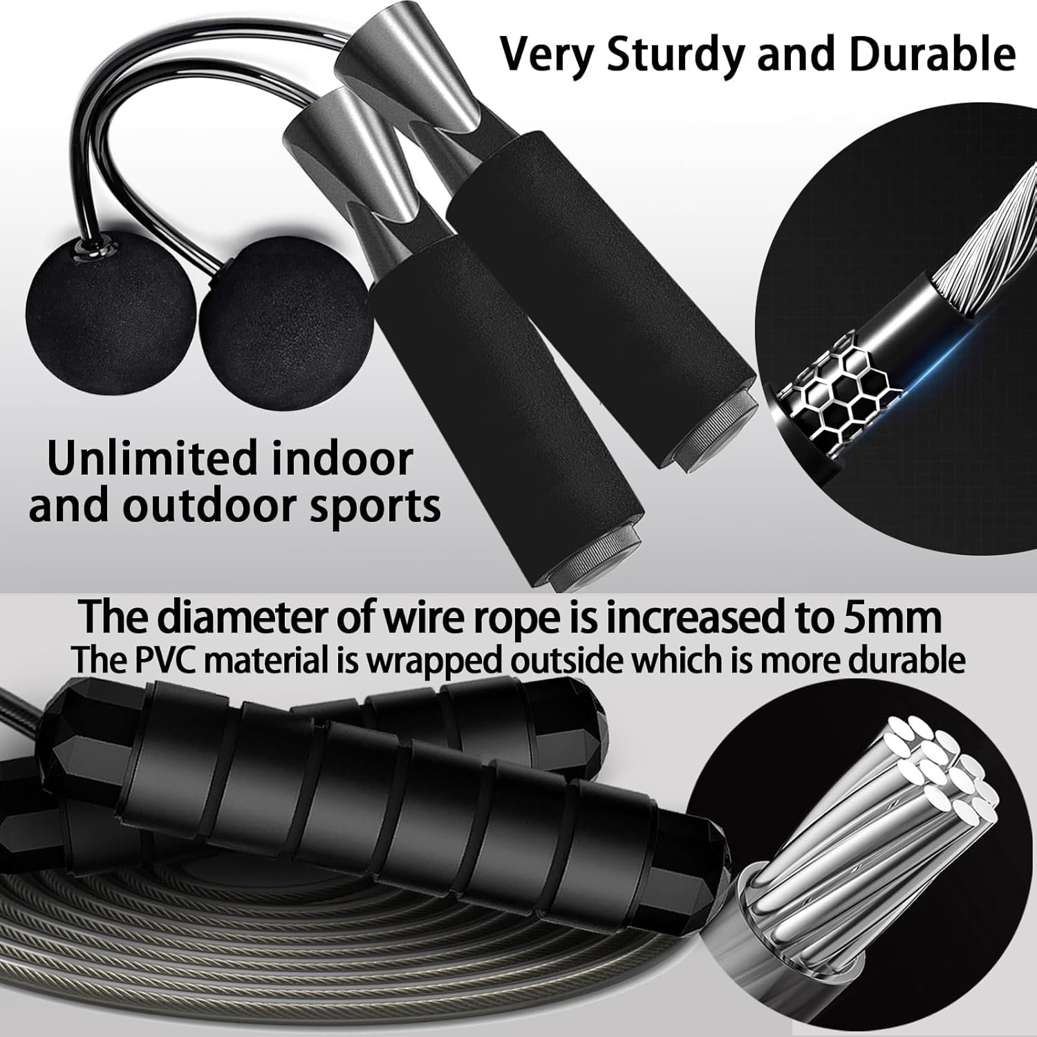 【SMOOTH FAST & NO MORE TANGLING】 – High quality ball bearings ensure smooth and rapid speed rotation, avoids the twisting, winding or bending like other fitness ropes,which brings your a perfect exercise of skipping rope.