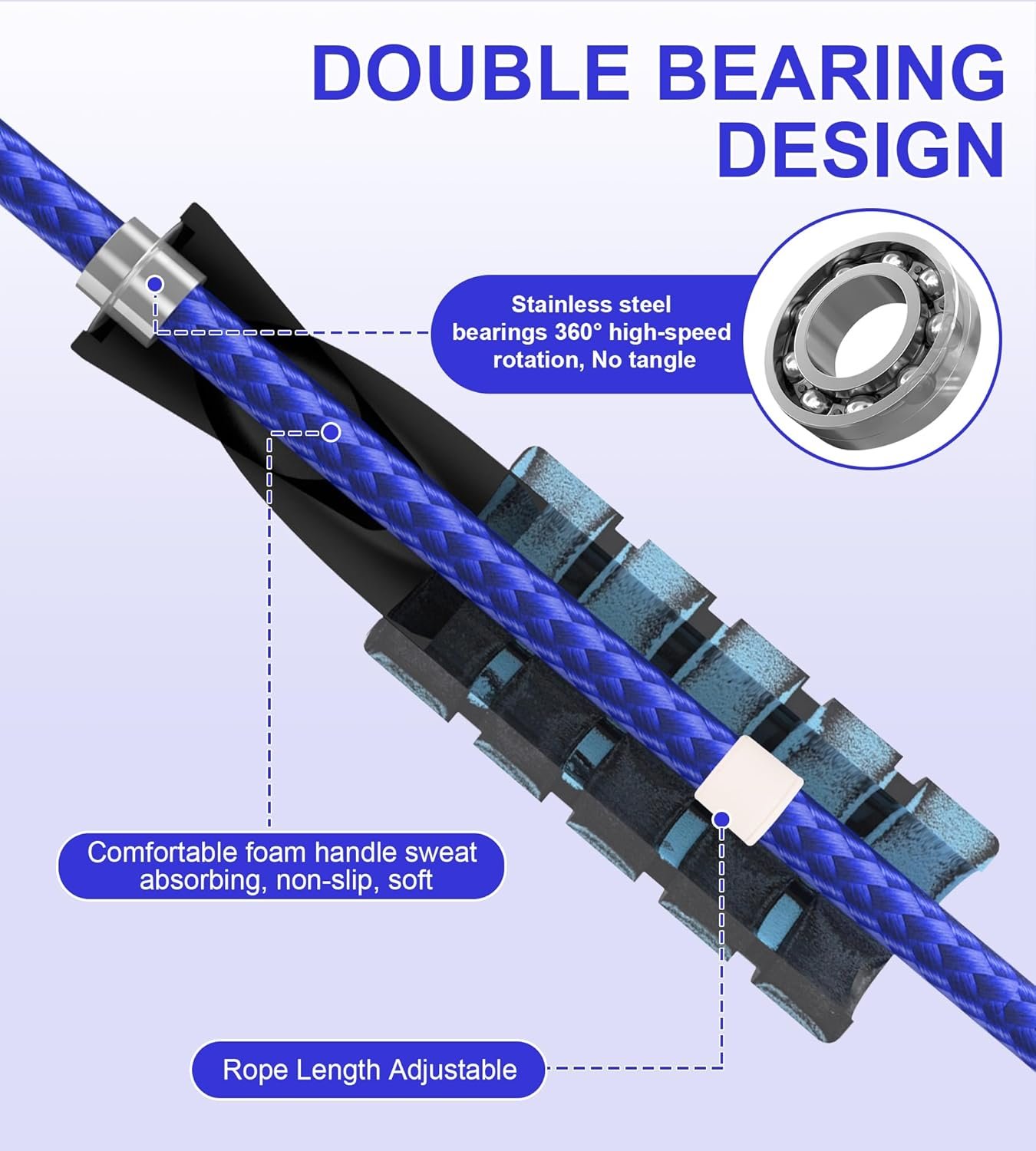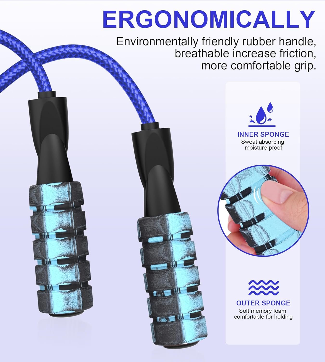 Soft Foam Handles: The handles of adult jump rope are designed with soft memory foam and a grooved pattern for better grip and comfort. They are nonslip, waterproof, and sweat-absorbent, which makes them comfortable to hold during workouts